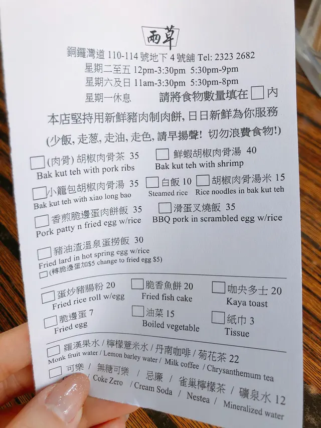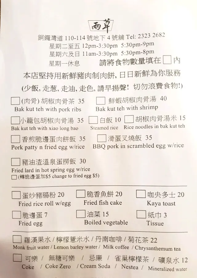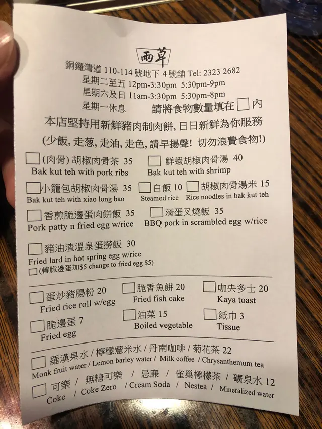 兩草 (銅鑼灣道) (铜锣湾) 网址: https://s.openrice.com/QrLS0RxS900 地址: 香港銅鑼灣銅鑼灣道110-114號永興閣地舖 电话: +852 23232682