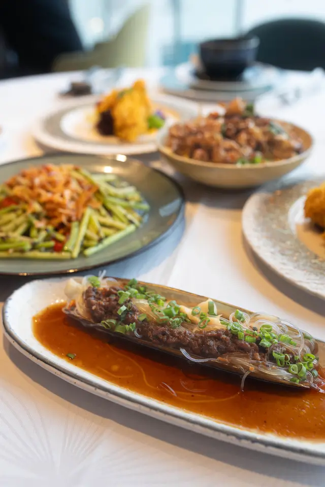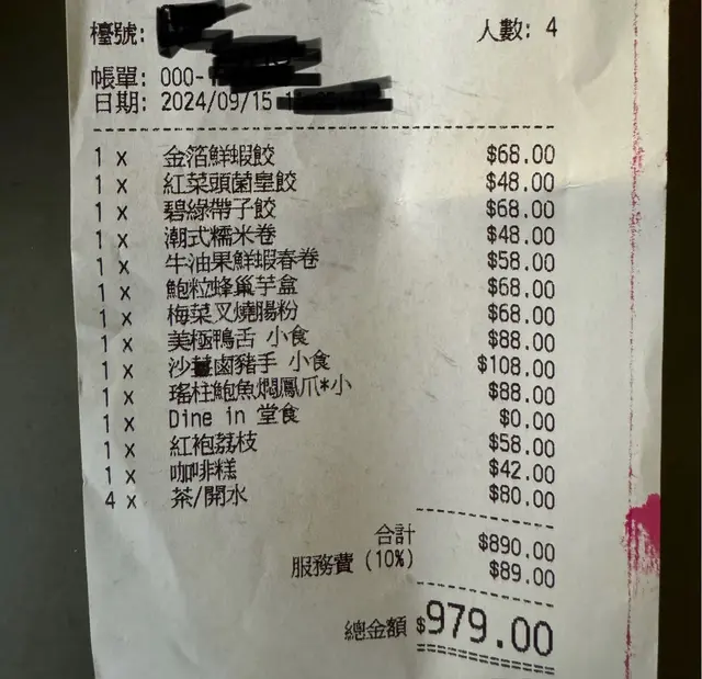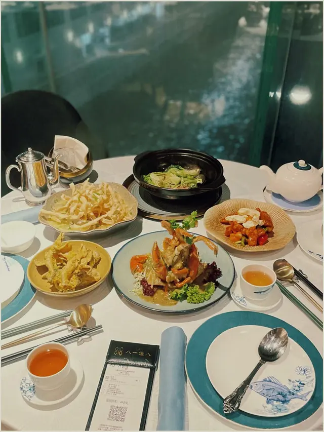 This restaurant is located at 4/F Harbour City, specializing in seafood. It is part of the Maxim Group, and while we have visited the adjacent Singaporean restaurant a few years back, it is our first time coming to 818 The Seafood.Walking past the fish tank at the entrance, the staff leads us to the main dining room, with a few VIP rooms which offer more privacy on the side. The décor is nice, classy but relaxing. The highlight is certainly the harbour view, and we are fortunate to get a table on the window side, allowing us to enjoy the sunset and beautiful night scenery.To start we have Deep-Fried Shrimp Roll 酥炸五香蝦棗 ($78). Thinking it would be like those we have in Chiu Chow restaurant, it turns out to be quite different, more akin to the style for the Cantonese deep-fried oysters with crispy batter. The taste is decent, but the shrimp roll has too much fatty pork in my opinion.We also order a Combo Set ($1,888), which includes Braised Hanasaki Crab with Sarawak White Pepper 砂撈越白胡椒花咲蟹半隻. The hard and spiny shell has been cracked open to make it easy to enjoy, and the meat is sweet, with firm texture, where the white pepper sauce gives fragrance but not spicy. The other dish in the Combo Set is Stir-Fried Chinese Kale with Garlic and Pork Lard 拍蒜油渣炒芥蘭. The vegetables are tender, nicely seasoned, with the pork lard in particular giving rich aromas and flavours. While it looks simple, it is a wonderful dish.Feeling still a bit empty, we also ordered Sauteed and Deep-Fried Flat Rice Noodles with Clams 酥炸花蜆鴛鴦脆皮河粉 ($198) to wrap up. The rice noodles are served in two styles, one deep-fried to offer a crisp texture, the other stir-fried with sauce to remain soft and moist. Cooked together with the large clams so the noodles can absorb the umami flavours, it is delicious. I would prefer less deep-fried and more sauteed noodles, but we applaud the creativity that goes into this dish.Service is decent, with the staff being courteous but did not offer much introduction to the dishes. The bill on the night is $2,428. The customers are basically all tourists and business people, but I think it is a good place for bigger groups to enjoy fresh seafood. Not exactly wow, but can try it out.…查看更多