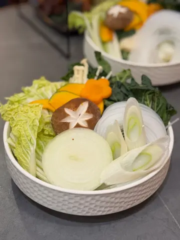 餐厅采用浅木色装潢,拉开趟门可以看到墙身有日式和风图案的壁画,整间都充满日式风味。外面比较多吃烤肉火锅的餐厅,而主打寿喜烧的餐厅确实相对来说比较少,而且餐厅主打关西风的寿喜烧,同类型餐厅一般都要收加一服务费,但这间餐厅是免加一的,算起上来更加划算唷!♡寿喜烧套餐$788极品•八不寿喜烧二人牛盛一次过可以尝到三种不同味道的牛肉,包括和牛封门柳、澳洲和牛牛小排和A5佐贺牛。可以看到三种不同牛肉的纹理油花,和牛封门柳肉色较为鲜艳,牛肉质结实,澳洲和牛牛小排,肉质软腍,牛的油脂味浓郁,而来自日本佐贺县的A5佐贺牛则有细腻的口感。比较起上来,我和家人最喜欢油脂味丰富的澳洲和牛牛小排。把牛肉等食材沾上鸡蛋浆,除了可以中和寿喜烧酱汁的咸甜味之外,也可以增加滑溜的口感。另外附上两个用日式陶瓷樽,一个是清汤,一个是寿喜烧酱汁,可以随个人口味倒进锅里。还有豆腐和野菜拼盘,有蔬菜、冬菇、南瓜、金菇、红萝卜、面,如果不想要这个拼盘的话,可以加钱转做其他牛肉,选择更加有弹性唷!另外我们点了一个♡茶碗蒸$28开开胃,茶碗蒸里有樱花虾、带子、鸣门卷、冬菇、葱,整体感觉水份偏多,如果少一点水会更加好吃。然后再吃了一碟♡挪威三文鱼刺身$78,共有八片。而饮品方面,我们点了清酒白鹿,配牛肉小酌一下,满满的日式味道啊!