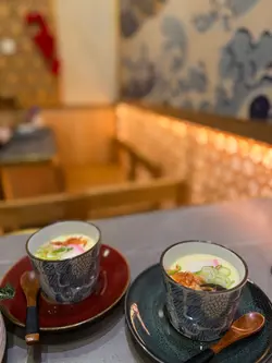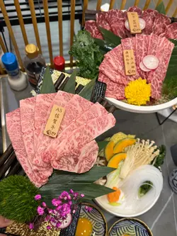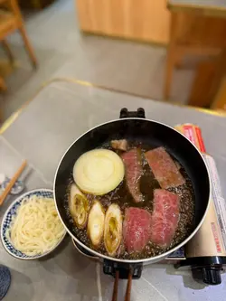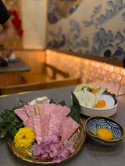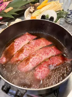 餐廳採用淺木色裝潢,拉開趟門可以看到牆身有日式和風圖案的壁畫,整間都充滿日式風味。外面比較多吃烤肉火鍋的餐廳,而主打壽喜燒的餐廳確實相對來說比較少,而且餐廳主打關西風的壽喜燒,同類型餐廳一般都要收加一服務費,但這間餐廳是免加一的,算起上來更加划算唷!♡壽喜燒套餐$788極品•八不壽喜燒二人牛盛一次過可以嚐到三種不同味道的牛肉,包括和牛封門柳、澳洲和牛牛小排和A5佐賀牛。可以看到三種不同牛肉的紋理油花,和牛封門柳肉色較為鮮艷,牛肉質結實,澳洲和牛牛小排,肉質軟腍,牛的油脂味濃郁,而來自日本佐賀縣的A5佐賀牛則有細膩的口感。比較起上來,我和家人最喜歡油脂味豐富的澳洲和牛牛小排。把牛肉等食材沾上雞蛋漿,除了可以中和壽喜燒醬汁的鹹甜味之外,也可以增加滑溜的口感。另外附上兩個用日式陶瓷樽,一個是清湯,一個是壽喜燒醬汁,可以隨個人口味倒進鍋裏。還有豆腐和野菜拼盤,有蔬菜、冬菇、南瓜、金菇、紅蘿蔔、麵,如果不想要這個拼盤的話,可以加錢轉做其他牛肉,選擇更加有彈性唷!另外我們點了一個♡茶碗蒸$28開開胃,茶碗蒸裏有櫻花蝦、帶子、鳴門卷、冬菇、蔥,整體感覺水份偏多,如果少一點水會更加好吃。然後再吃了一碟♡挪威三文魚刺身$78,共有八片。而飲品方面,我們點了清酒白鹿,配牛肉小酌一下,滿滿的日式味道啊!
