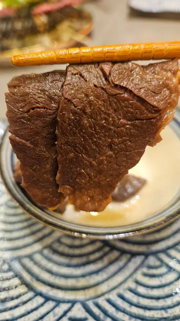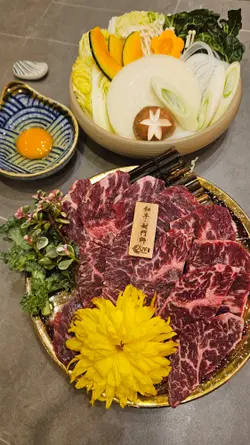 餐厅采用浅木色装潢,拉开趟门可以看到墙身有日式和风图案的壁画,整间都充满日式风味。外面比较多吃烤肉火锅的餐厅,而主打寿喜烧的餐厅确实相对来说比较少,而且餐厅主打关西风的寿喜烧,同类型餐厅一般都要收加一服务费,但这间餐厅是免加一的,算起上来更加划算唷!♡寿喜烧套餐$788极品•八不寿喜烧二人牛盛一次过可以尝到三种不同味道的牛肉,包括和牛封门柳、澳洲和牛牛小排和A5佐贺牛。可以看到三种不同牛肉的纹理油花,和牛封门柳肉色较为鲜艳,牛肉质结实,澳洲和牛牛小排,肉质软腍,牛的油脂味浓郁,而来自日本佐贺县的A5佐贺牛则有细腻的口感。比较起上来,我和家人最喜欢油脂味丰富的澳洲和牛牛小排。把牛肉等食材沾上鸡蛋浆,除了可以中和寿喜烧酱汁的咸甜味之外,也可以增加滑溜的口感。另外附上两个用日式陶瓷樽,一个是清汤,一个是寿喜烧酱汁,可以随个人口味倒进锅里。还有豆腐和野菜拼盘,有蔬菜、冬菇、南瓜、金菇、红萝卜、面,如果不想要这个拼盘的话,可以加钱转做其他牛肉,选择更加有弹性唷!另外我们点了一个♡茶碗蒸$28开开胃,茶碗蒸里有樱花虾、带子、鸣门卷、冬菇、葱,整体感觉水份偏多,如果少一点水会更加好吃。然后再吃了一碟♡挪威三文鱼刺身$78,共有八片。而饮品方面,我们点了清酒白鹿,配牛肉小酌一下,满满的日式味道啊!