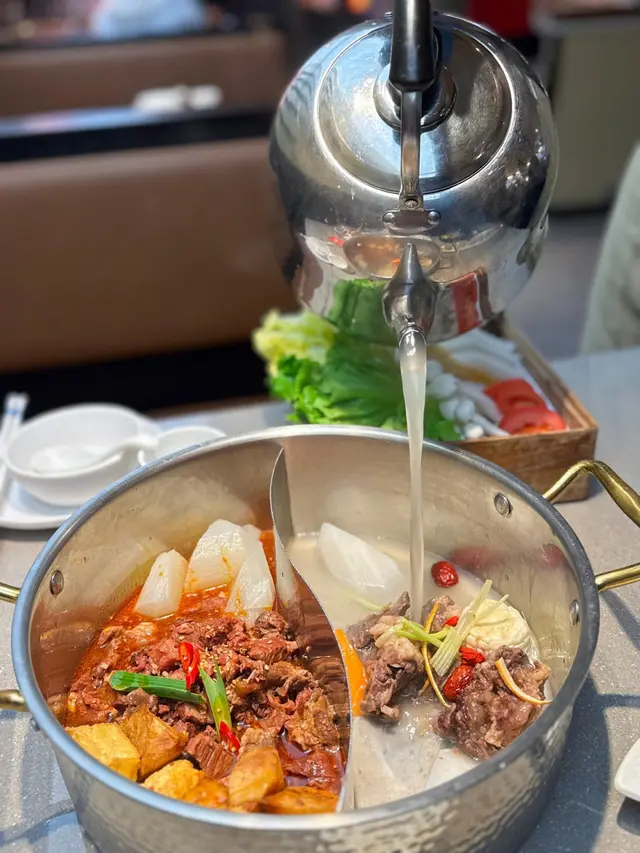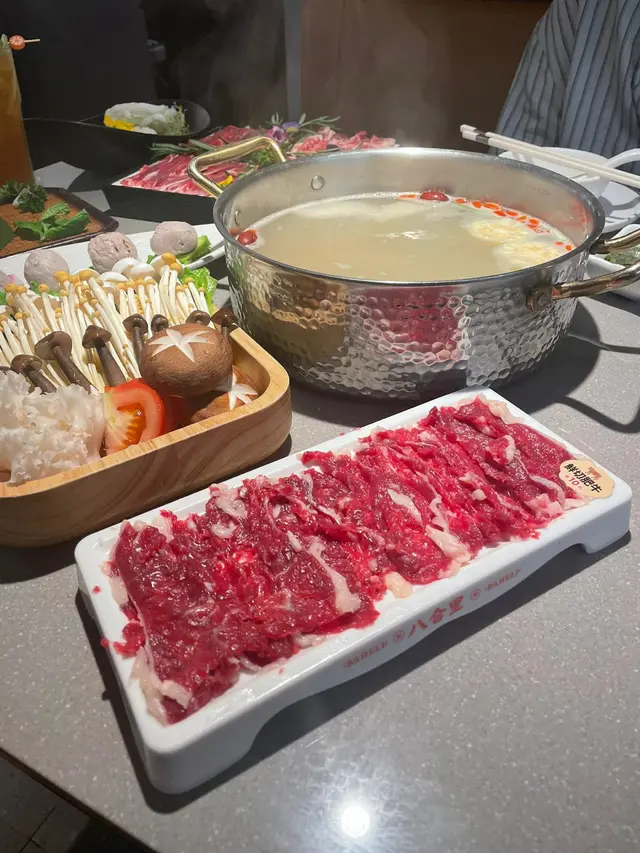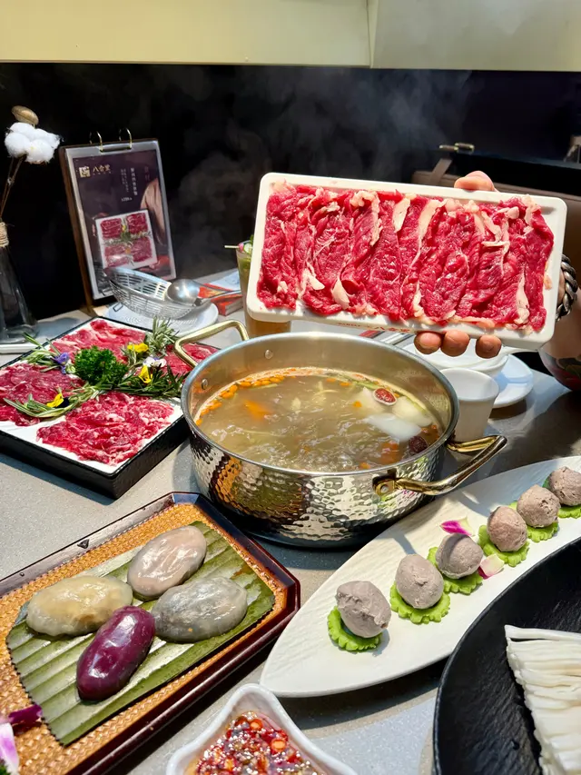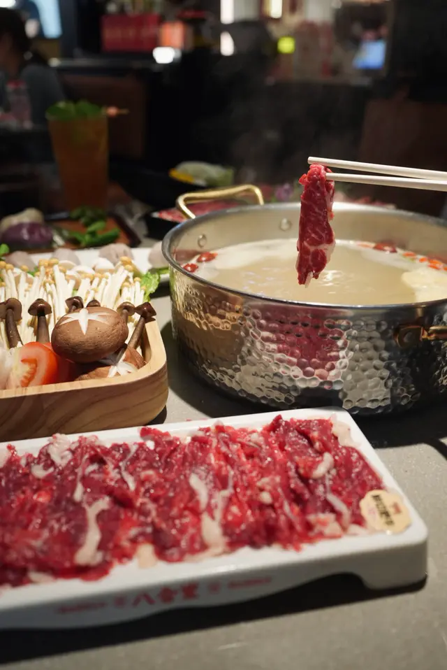 作為火鍋控,一早聽聞沙田開咗潮汕神級牛肉火鍋「八合里」,等到今日先有機會試,真係要講句——點解唔早啲嚟啊!✈️ 原來唔使飛潮汕,香港都食到咁地道嘅鮮牛肉火鍋,真心相見恨晚!一入門口最吸睛一定係個「鮮牛肉明檔」,師傅手起刀落即場切牛肉,刀功乾淨利落,每塊厚薄均勻。最安心係選用香港五豐行鮮牛,即日屠宰日日送,真材實料,陣陣牛鮮味撲鼻,未食已經流口水!🤤我哋叫咗「原味牛骨湯底」,清淡得嚟牛味香濃,完美帶出牛肉鮮味,絕對唔會搶戲。重頭戲係「至尊鮮肉四寶拼盤」同「鮮切肥牛」!上枱時朋友笑問:「聽講呢度啲牛肉新鮮到倒轉個碟都唔跌?」我哋真係試下——結果真係貼實個碟,一啲都唔跌!新鮮程度滿分!💯潮汕火鍋最緊要涮嘅時間,呢度牛肉薄切,師傅建議涮10秒左右就食得。果然,短短十秒牛肉變色即刻撈起,入口嫩滑到難以置信,牛味濃到爆燈,完全冇雪藏味,得純粹嘅鮮甜!另外「手牛丸雙拼」彈牙爆汁、「潮汕四色水晶粿」外皮Q軟餡料正宗、「果疏三色麵」顏色靚又健康。最後飲杯「爆打鴨屎香檸檬茶」酸甜解膩,再嚟個「潤肺小吊梨」滋潤收尾,完美!🍐總括而言,八合里真係名不虛傳!由牛肉新鮮度、湯底純正到配菜製作,樣樣都體現到潮汕火鍋精髓。雖然遲咗嚟試,但呢份鮮味絕對值得等待。以後想食正宗潮汕鮮牛肉火鍋,終於唔使心掛掛北上,香港都滿足到啦!👏…查看更多