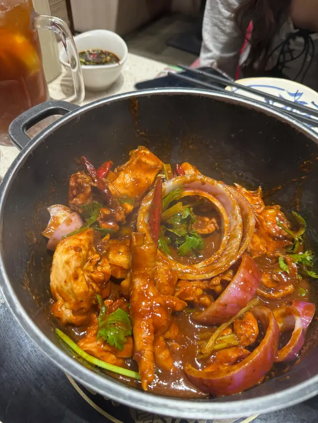 鸡及配菜上台前无爆过,感觉鸡是烚至八成熟放入煲内用酱汁煮熟,鸡完全无味,而酱汁真心极咸,极差!不过炸响铃不错,刚炸起十分脆口,另外值得赞吓员工服务态度,都会帮客换碟。…查看更多