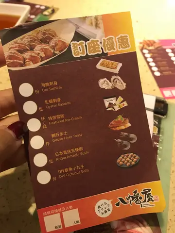 依家约亲朋友都食放题, 都试左好多间 听人介绍过呢间八幡屋日本料理几正, 以我地为食精神 点会过放 >O< 今日就踩上去 地点都几好揾 就系兆万楼上, 食饭最紧要 头盘 梗系 食左环境先啦 我地一入去系坐左系最入边间小房仔度 墙上D画都几有feel 有D樱花点缀下 同埋D位都算阔落 几干净 上菜速度好快 唔似某D餐厅咁 限时食 又上得好慢 服务态度都好好 好有礼貌入正题先 野食先系主角 食物种类真系超多 我地2个小女子 好想试晒 但肚皮同胃仔唔争气T.T 不过都食左好多 我地仲order埋升级食物 有生蚝刺身 黑松露珍珠鹅盰带子寿司 仲有仲有心太软 好迷你 劲仲意 我好似order左3次 哈哈仲有D剌身好新鲜 三文鱼好肥好厚 北寄贝 鲍片都好鲜甜 太多啦 数唔晒 好满足^D^天妇罗类 D小紫薯仔都好甜 细细粒 好cute 仲有D烧物 个羊排超好味 完全冇骚味 好似食牛咁 唔食得牛肉果D朋友仔可以试下 好香好滑又juice 仲试左个烧鲭鱼 好后悔净系order左一次 我好喜 冇咩骨 烧得岩岩好熟 好滑><佢有个海鲜汤 呢个少少失望 因为冇鲜甜咁 好似饮紧鸡汤咁 海鲜唔突出 要改善 到蟹粥啦 不得了 D蟹膏未捞混已经急不及待走晒出黎 D粥超级甜啊 而且好绵 D米好似珍珠米咁 但有D大份 食唔晒 >< 仲有个好难忘GE 系可以自制小丸子 有得玩又有得食 唔错 唔系间间都有架到甜品 有泡芙ar!!!!劲仲意 好似雪糕咁 仲有个樱花水信玄饼 食落去有阵阵花香味 好特别 比个like先@@b 本身仲想试埋个神秘气球甜品 可惜果日冇晒 sad! 下次去一定要试 呢间野整体黎讲 味道 都几得 会再食过 价钱都系300蚊左右一个人 同其他放题差唔多 值得一试喔 一只字 掂!!! 仲有好多野都未试到 揾日再战.....…查看更多