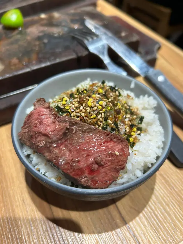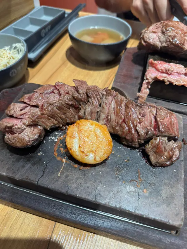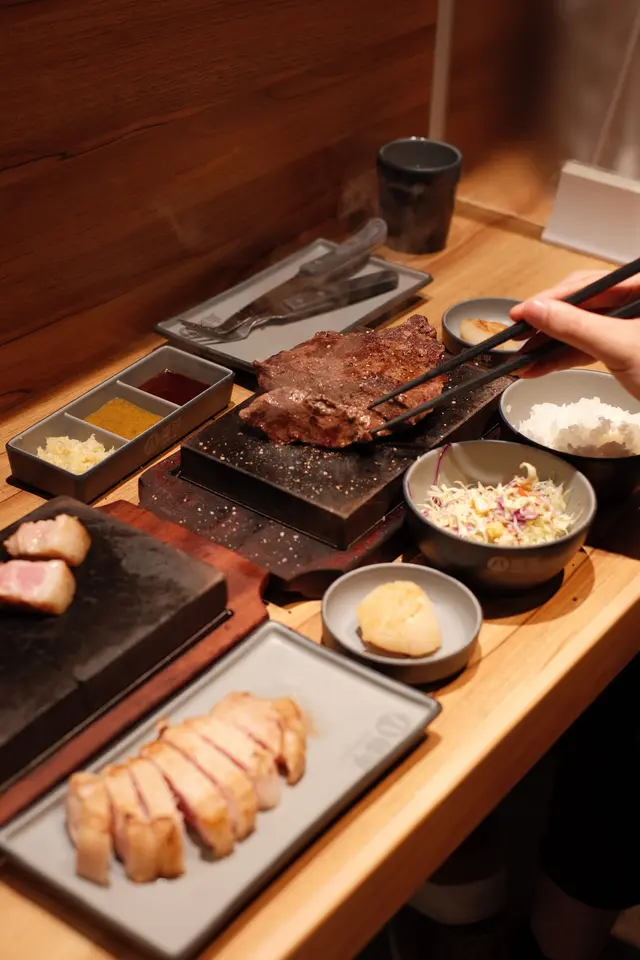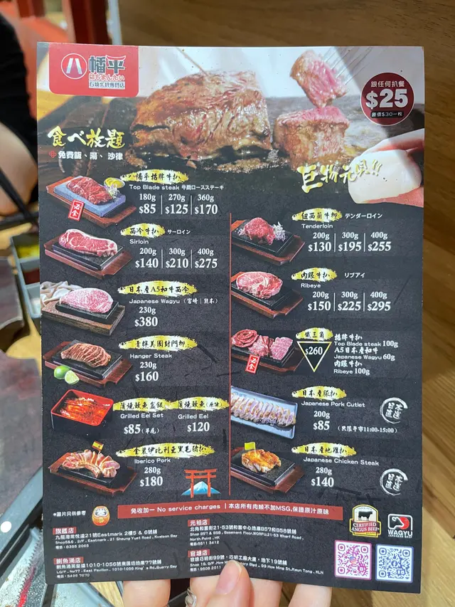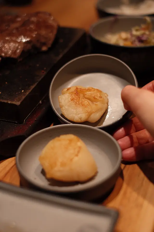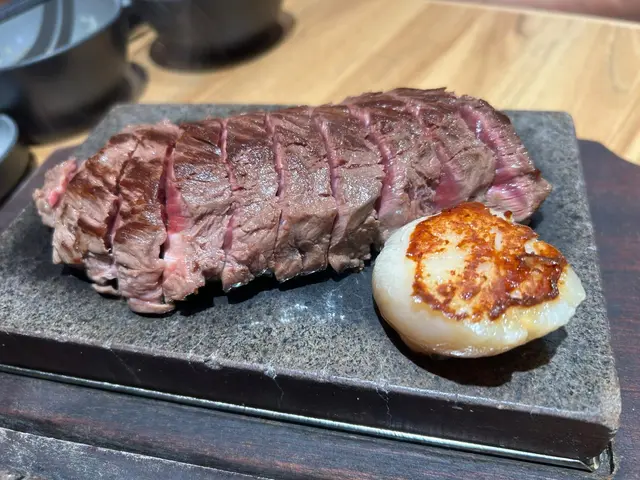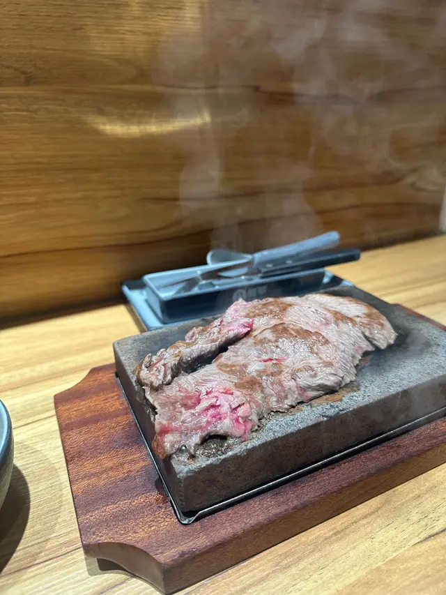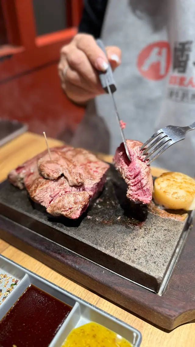 今日突然好想食石燒牛扒, 上OPENRICE 搵下附近有無啦. 搵到呢間"八幡平石燒牛扒專門店. 環境乾淨整潔唔會油淋淋. 好似日本小店精緻實用所有野都係. 門口有自助點餐機可直接點餐, 店員都會過來幫忙如有問題 , 座位上提供圍裙 非常好 ! 八幡平招牌牛扒 270G $125 招牌牛扒好大份. 我自己比較鍾意食medium rare, 所以一上枱我馬上切開一半. 一半放碟上先. 先食一半. 表面焦香鎖住肉汁. 非常可口軟淋. (如果石頭唔夠熱可以請店員協助更換一塊熱石)珍寶元貝 (扒餐+HK$25/一枚) 元貝好大隻,好厚肉, 鮮甜多汁, 記得唔好燒咁耐. 青檸封門柳 230G$160 肉質柔嫩,牛味濃郁 加埋青檸汁 多一重種清爽味道, 餐廳幫我切件, 方便食用。 加配左元貝, 好大粒啖啖肉, 煎到表面焦脆特別爽口, 值得加配。 自助吧提供的沙律, 蘿蔔牛肉湯和 珍珠米飯仲有飯素 ,全部都係無限任添。 特別一提個牛肉湯一定要飲,真係好足料用好多牛肉煲,入邊仲有洋蔥所以都好清甜。 單係個湯已經完勝好多石燒牛扒店。 八幡平石燒牛扒專門店 地址: 鰂魚涌英皇道1010-1056號東匯坊地庫077號舖太古站B出口…查看更多
