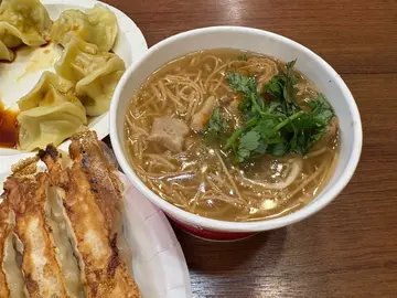 赶时间下唔想食快餐咁hea,行过见到八方云集冇乜人排队,就即刻走入去买个煎饺同牛肉面。落单到攞餐唔洗10分钟,效率几高,啱晒我呢啲上班族。煎饺外皮煎得香脆,唔会太油,咬落去有肉汁,唔干,馅料有调味唔死咸,质地松紧适中。牛肉面份量够饱,汤底香浓带微辣,唔系得味精𠮶种;牛肉几件,炆得腍唔鞋,面质都OK唔会煮过火。堂食坐位唔算多但干净企理,唔使迫住食完就走,仲可以慢慢倾个电话抖一抖。成餐埋单六七十蚊搞掂,算系CP值唔错,加埋有热汤饮、饺子够香脆,唔洗成身味都可以坐低食吓。对我嚟讲,快、靓、正就已经加分,下次返工路过都会再帮衬。…查看更多