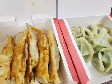 午膳时胃口不太好,选择外卖简单轻食。大约一时到达,门外有人等候食物。餐牌有多款选择,有锅贴餐、水饺餐、面线餐等等,配汤或饮品(豆浆以外的要加钱)。有长时间未有仔细看餐牌,原来有多款饮品,主要是冻饮。虽然多人在门外,但是下单不用排队,问店员需时多久才有,他表示锅贴较长时间,水饺就快,若赶时间记得留意。由于有时间,我选择了双拼套餐(招牌锅贴5只+韮菜水饺5只+热豆浆=$41)结果,等了超过15分钟,终于明白为何门外长时间有人...