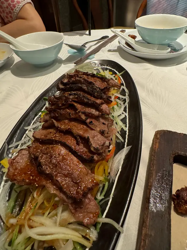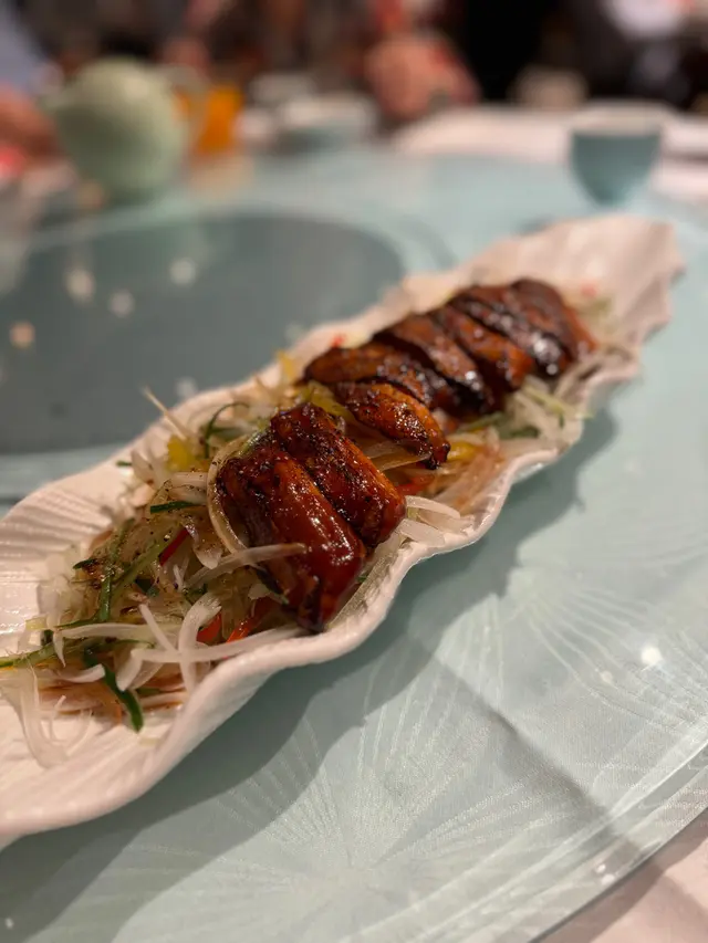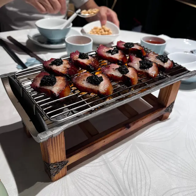 今日啱啱落機同屋企人食飯,就去咗最近嘅一間好出名嘅中菜廳,仲要係東薈城入邊地點食物方便。入到去地方好大,入面都有幾多枱。個店員我留咗一個窗邊枱俾我哋。我哋6個人叫咗6個主食,其中最出色係黑松露叉燒,好有特色嘅係會倒酒精入去一個爐,然後就點火再燒叉燒,變左燶邊叉,食落仲有啖啖酒香。之後其中有一款係茶爅鴨,係出面都唔見有呢款菜,幾特別有d似北京填鴨。有得加醬同加薑,令到個名有左清新嘅感覺。最後想提及嘅係一個黃金蝦球,嗰張包裹住啲蝦,令到成個蝦入味。