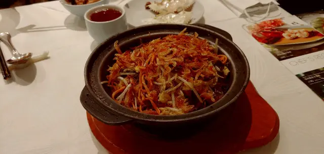 。後來在街市發現這種菇。60蚊一斤, 基本上四两都足夠做一個餸。 無須太多技巧已經可以好好效果。另一個類似煲仔菜用上大量嘅蝦乾。哪有不好吃的道理?炸魚塊, 這個炸魚嘅外層有些許咸蛋黃的成分吃起來帶點咸香。不過沾醬嘅粟米湯做出來嘅醬則有點"缺乏創意"!服務如常舒適。當晚走嘅時候留意到佢地將會搬去樓下。下次來佢應該都搬咗落下面了。…查看更多