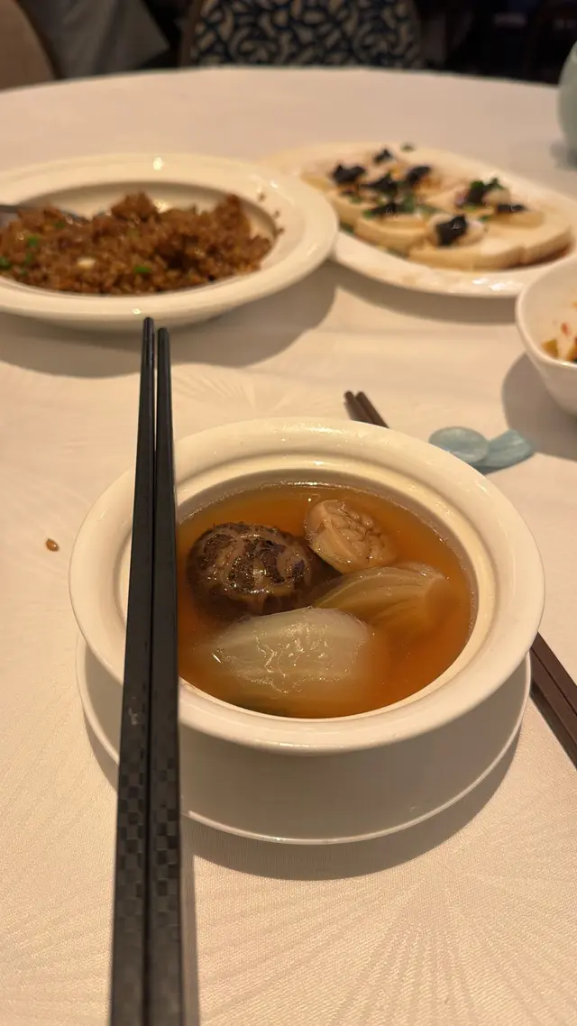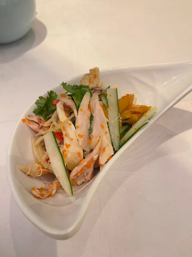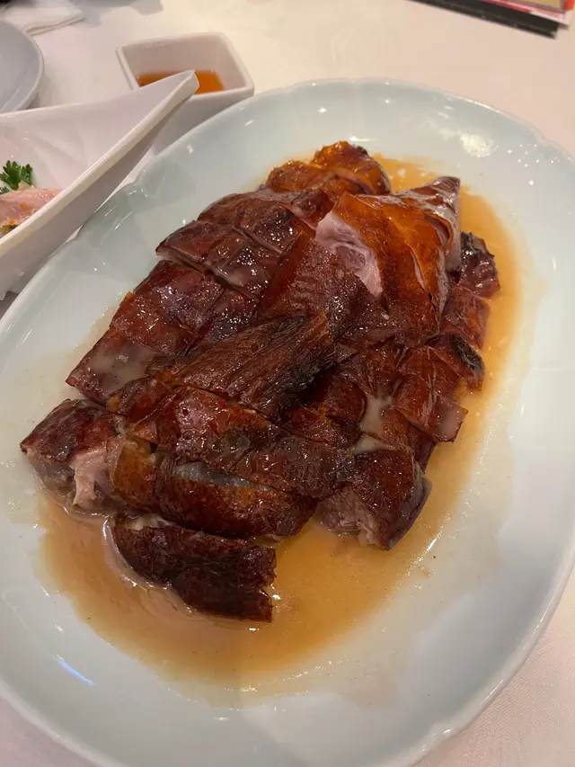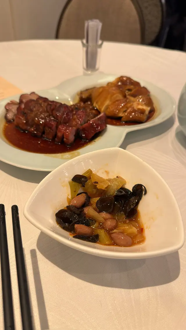 咕嚕肉一上枱已經聞到陣陣香氣,肥瘦分明嘅肉炸得外脆內嫩,咬落去油香四溢,完全唔膩。醬汁酸酸甜甜,比例掌握得極好,唔會搶味,反而令肉味更突出。每一件都好似經過精心設計,唔係亂咁炒出嚟。食完真係會忍唔住講句:「呢個係我食過最好味嘅咕嚕肉!」脆皮鴨係另一個驚喜。個皮炸得香脆但唔油膩,咬落去有種「咔」一聲嘅滿足感。鴨肉保持嫩滑,冇半點乾柴,啖啖肉都好juicy。配埋店家自製嘅梅醬,酸甜中帶微微果香,令整體味道更有層次。龍蝦年糕好有創意。龍蝦肉鮮甜彈牙,年糕煙韌得嚟唔黏牙,兩者結合得出奇地夾。醬汁微辣,令龍蝦味更突出。係一道好有節日感覺嘅菜式,食落去有種「新年先食到」嘅儀式感,但而家可以隨時享受,真係幸福。清炒豆苗炒得好乾淨,冇多餘油份,保留咗菜本身嘅清香。入口爽脆,完全唔焗。係一碟好適合平衡味蕾嘅菜式,食完重口味嘅主菜之後,嚟返碟豆苗,整個人都清醒晒。牛腩陳村粉炆得夠腍,入口即化,湯底濃郁但唔死鹹,有種老火湯嘅深度。陳村粉吸晒湯汁,每啖都係精華。食落去有種好熟悉嘅感覺,好似返咗細個喺茶餐廳食晚餐,嗰種溫暖、嗰種人情味,喺呢碗粉入面完全呈現。我用左白金AE 平日75折即刻覺得勁抵食!!!…查看更多