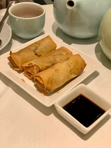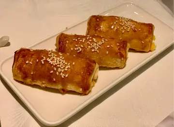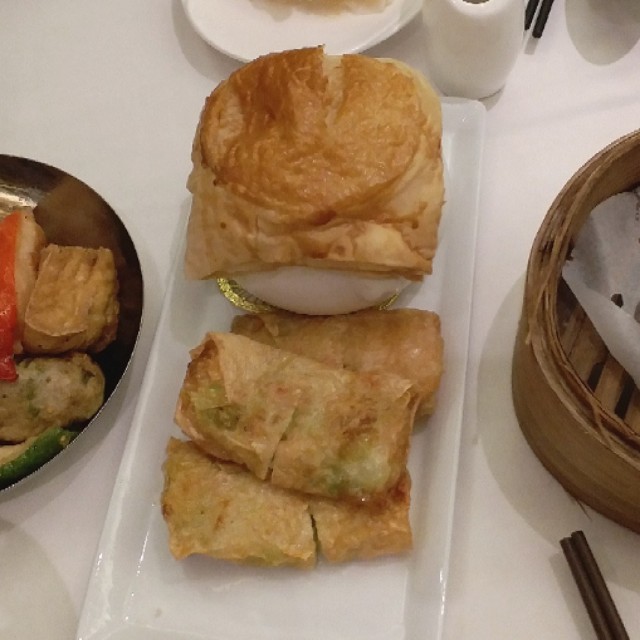 虾大只,肉实,吾弹牙,胡椒味浓,掩盖左虾味人,也食吾出笋味。叉烧包较佳,叉烧粒大小适中,吾太甜,包软熟:)炸点吾好食。鹅肝蟹籽春卷,无鹅肝味,春卷皮韧,吾脆