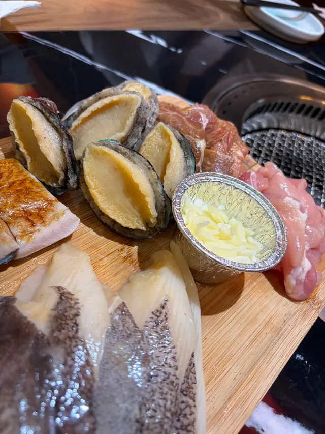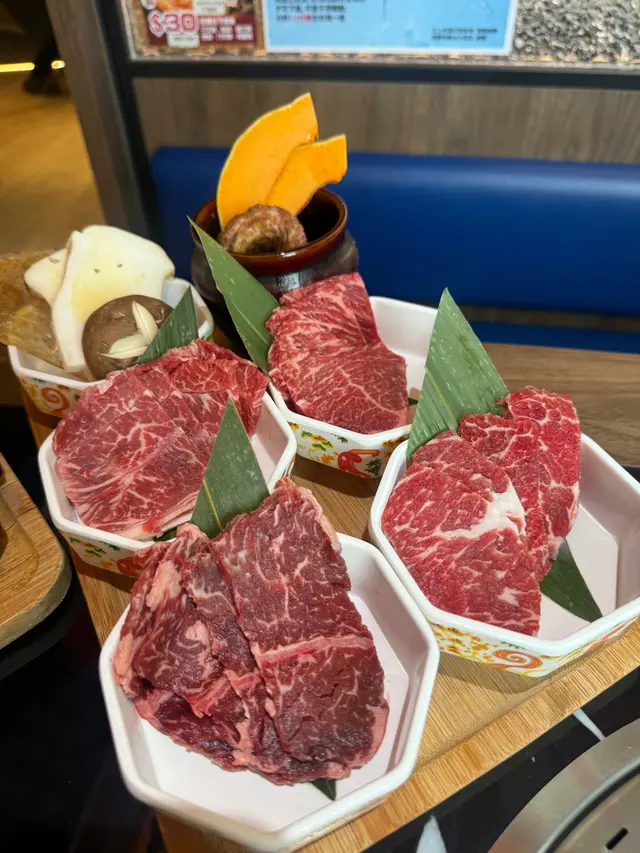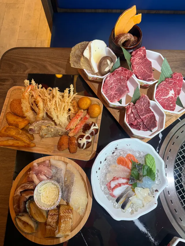 同老公喺尖東搵咗呢間八木橋日式燒肉店,佢哋做緊優惠,A4和牛餐半價,我哋就揀咗呢個餐,好抵。當然要食日本A4和牛,我哋叫咗A4黑毛和牛三角腩、A4黑毛和牛牛肩、A4黑毛和牛和尚頭、A4黑毛和牛後腰肉同埋A4黑毛和牛薄切,可以試曬咁多唔同既部位,好正呀。黑毛和牛有好靚嘅雪花紋,燒起嚟充滿油脂香,肉質幼嫩,好味。佢仲有A5 和牛西冷,好大塊,雪花紋靚,好食。我哋都叫咗一啲海鮮,有鮑魚、白鱔、比目魚等,海鮮都好新鮮,燒起嚟特別好食。我鍾意食炸嘢,叫咗好多炸物,佢哋嘅炸物都唔錯,炸得香脆,我最鍾意食蝦天婦羅。仲有飲品任飲同雪糕食,好豐富好滿足。…查看更多