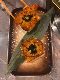 今日同朋友嚟试吓呢间尖沙咀新开嘅居酒屋,睇得出呢度比较主要食串烧🥢蟹肉蟹籽沙律啖啖都食到蟹肉,唔系得个名,蟹籽又爆哂汁咁,配埋啲青瓜好爽口,唔会太腻,开胃一流。🥢帆立贝&左口鱼边寿司帆立贝新鲜甜美,左口鱼边烧到微微焦香,油脂啱啱好,入口即化,唔使点豉油都已经够味。🥢炸鸡软骨炸得够香脆,但唔会太干,咬落去有啲烟韧感,好适合配啤酒。🥢厚切牛舌心切得厚但烧得啱啱好,唔韧,咬落有弹性,带少少焦香,牛味好突出🥢自家制牛肋条都系推介之一,烧到外面焦香,入面仲保持到啲肉汁,酱汁味道浓郁但唔会抢肉味,咬落去好满足。🥢芦笋猪肉卷比较清新少少,芦笋爽脆,猪肉薄薄一层包住,唔油腻🥢自家制免治鸡肉棒食得出系手打嘅,肉质唔会太碎,仲有啲啲软骨,配埋蛋黄酱油食真系一流🥢紫苏鸡皮虾呢个配搭几有惊喜,紫苏嘅香味中和咗鸡皮同虾嘅油香,咬落外脆内嫩,层次几丰富,唔系间间都有得食。🥢日本鸡翼外皮烧到金黄脆卜卜,里面肉质滑嫩,调味唔会太咸🥢明太子饭团饭团烘到微脆,入面明太子咸香适中,唔会太浓,咬落有啲烟韧感,饱肚又满足。…查看更多