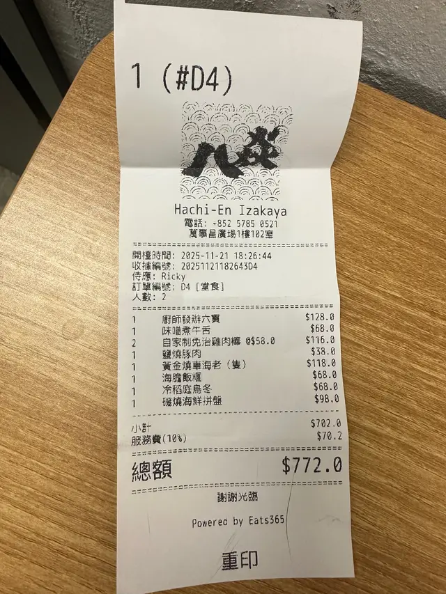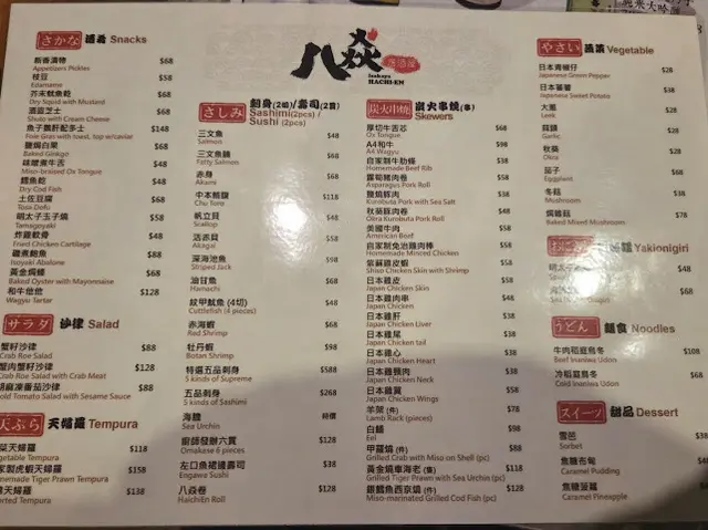 八焱居酒屋 (尖沙咀) 网上订位即赚Rice Dollars 网址: https://s.openrice.com/QrLS0GL0F00 地址: 香港尖沙咀寶勒巷3-7A號萬事昌廣場1樓102號舖 电话: +852 57850521