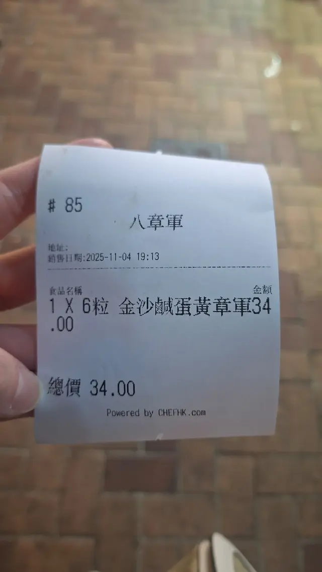 荃灣路德圍出名多食店,是日心血來潮想來個章魚小丸子,見到有間八章軍,決定試試看。金沙鹹蛋黃章軍(6粒)$34小丸子外層居然非常硬😵,鹹蛋黃醬只鐽在表層,完全沒有鹹蛋黃味,小丸子內裡只有1粒章魚粒,和幾粒粟米,真心僅此一次,絕不再光顧🙄查看更多
