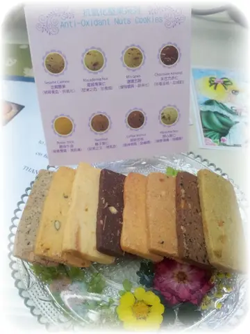 咬一有阵谷物的焦香,口感较多变、具层次,有炒米的香,具咬口而不甜腻,极力推介﹗夏威夷果仁 (坚果之后、助养颜)口感较为松化,牛油味重而较突出,惜果仁片略少。朱古力杏仁 (排毒滋补、助减肥)朱古力味道够浓郁,衬以啖啖薄而脆的杏仁片,口感不错,朱古力迷必爱﹗原味牛油 (营养丰富、润肌肤)口感最为松化,牛油落得不甚重手,故牛油味不够突出,中规中矩之选﹗榛子果仁 (坚果之王、补气血)又是口感松化的作品,榛子味突出,惜只尝其味,未见其影也,榛子碎早已与曲奇溶为一体也。咖啡合桃 (提神补气、助纤体)味道最激烈、口感最硬身之作﹗黑色点点是咖啡粒粒,慢慢细嚼,先苦后回甘,嚼劲十足,齿甲留香,越嚼越香,抢去了合桃的味道。开心果仁 (健脾润肤、强体质)香而轻盈的曲奇,松化而牛油味较香,惜开心果味较为失色,若混入多点儿开心果仁碎粒,可增加天然开心果甘香﹗ …Read More