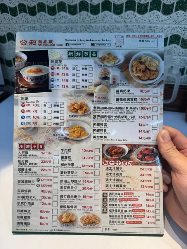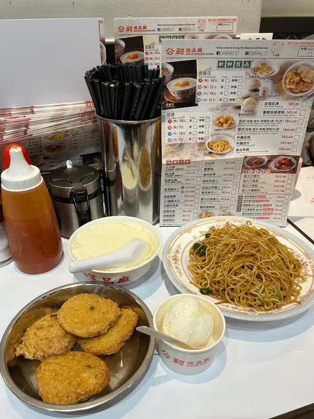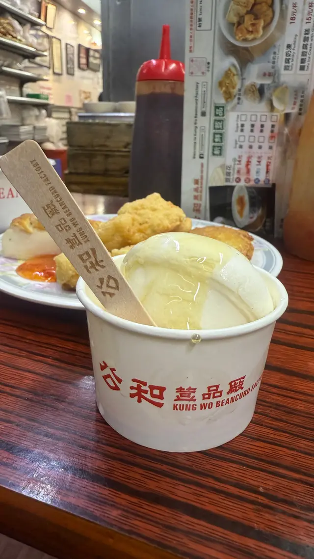 公和荳品廠 📍:香港深水埗北河街118號地舖🚗:深水埗地鐵B2出口 步行1分鐘📞:+852 2386-6871💲:~HKD20-40/head for 掃街Food quality👌🏼:無糖豆腐花(細/冷)、薑糖荳腐雪糕、叄拼、黑豆漿總結:🤔一間遊客必試嘅本地豆品廠 目測8成都旅客 同條街有兩間分店 舊舖位置少啲新舖容易啲排 但舊舖打卡會開心啲😝🤔出品各式各樣嘅豆類製品 冷熱甜品飲品炸物都應有盡有 食完都係覺得主要嚟食嗰情懷 食物好食與否都其次🤣🤔豆腐花有分冷熱同大細碗 有糖無糖真係非常細心 $12/碗 豆腐花就冇咩豆味 正常可接受🤔薑糖荳腐雪糕🍦都係得陣淡淡嘅豆味 🤔叄拼包煎釀豆腐 煎釀豆朴同黃金魚腐各2件 都係正正常常🤔飲品我試咗黑豆漿 $17/一大枝非常抵飲 但都係有點淡😳😨人多到癲 同隔離枱基本上係貼住食 拎背包嘅朋友背包都係放前面手抱住食 因為你背脊係對住其他人背脊 非常之咁貼😓😨啲姐姐做到手忙腳亂 所以你需要幫忙時佢未必應到你 同埋都急趕 你跟佢嗰套慢少少都麻煩到人🫨😋呢度有樣好 啲嘢好抵好平 所以食物普通你都唔會失望 食完就算🥺…查看更多