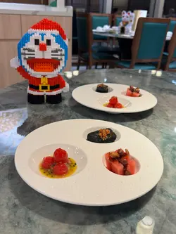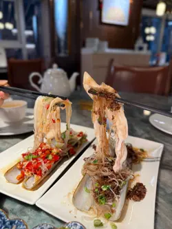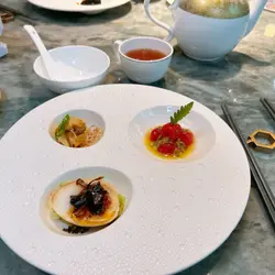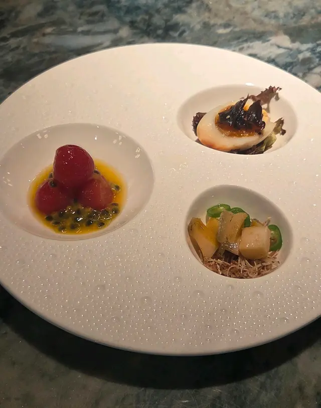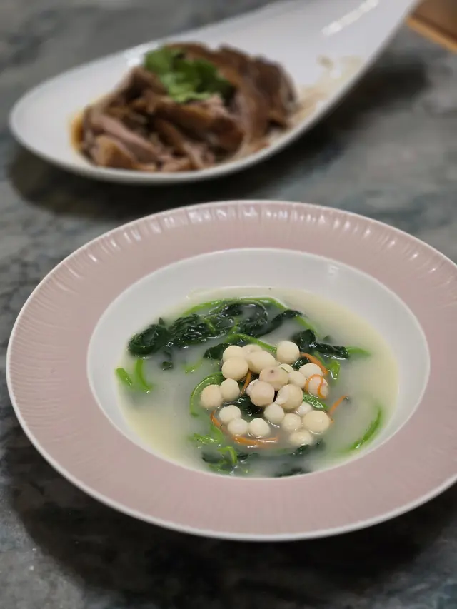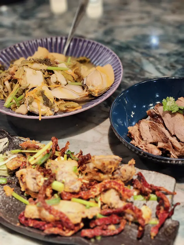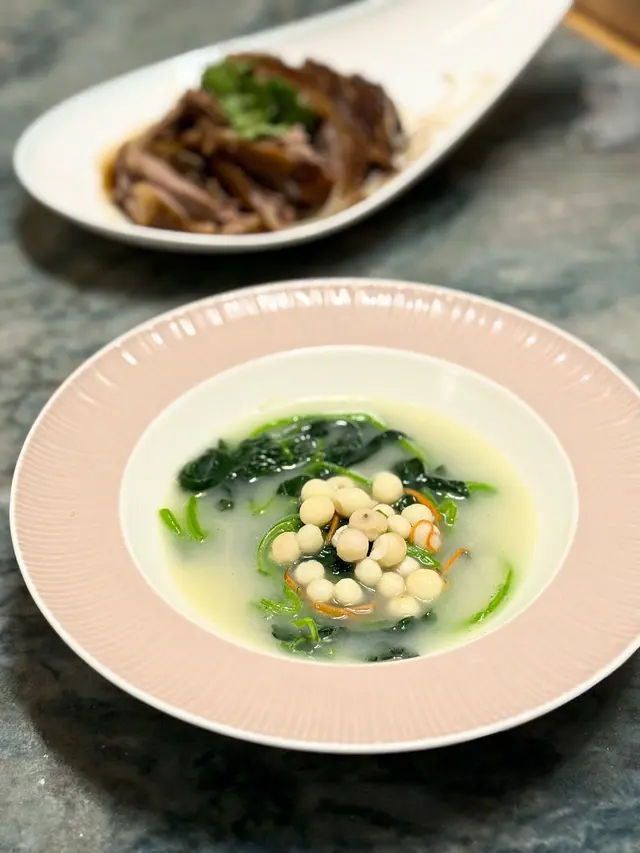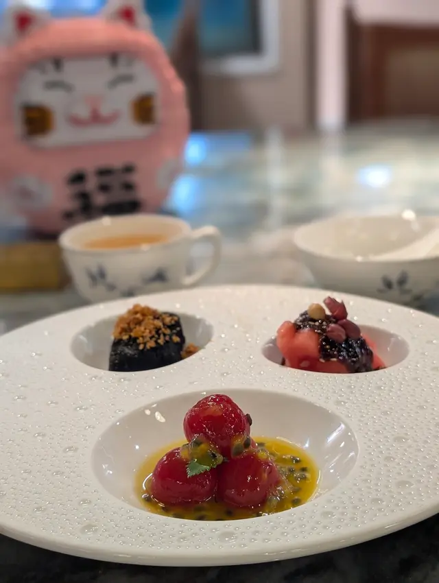 喺中環想搵間高質又坐得舒服嘅中菜,朋友就介紹咗呢間位於The L. Place嘅「六如」🥳。餐廳環境行簡約木系風格,感覺摩登又帶點禪意 🌿,空間感十足,無論係情侶撐枱腳👩❤️👨定係同朋友聚會都好啱。當晚我哋一行人試咗唔少招牌菜,整體感覺非常唔錯,食物質素同擺盤都好有驚喜!✨.一開場嘅兩道前菜已經令人眼前一亮!🤩 「黑磚豆腐」個名聽落好似好勁,其實係炸豆腐,但佢哋處理得好好,外層炸到金黃香脆,入面嘅豆腐就超級嫩滑,口感十足🤤,而且完全唔會覺得油膩,一啖接一啖好快就清晒。另一個「百香冰心丹霞」超級開胃,用酸酸甜甜嘅百香果汁去醃漬去咗皮嘅車厘茄🍅,果香四溢,絕對係喚醒味蕾嘅最佳選擇。.主菜方面,我哋叫咗兩款唔同口味嘅聖子皇。呢度嘅聖子皇真係好誇張,目測每隻都超過六吋長!📏 「黑蒜粉絲蒸聖子皇」一上枱就聞到超濃郁嘅黑蒜香,粉絲索晒啲蒜蓉同豉油嘅精華,同聖子嘅鮮甜味夾到不得了👍。而「青麻剁椒蒸聖子皇」就啱晒我呢啲重口味愛好者🌶️,青花椒嘅麻香加埋剁椒嘅鹹辣,層次非常豐富,惹味得嚟又唔會蓋過聖子本身嘅鮮味。之後個「胡椒湯年糕淮山泡蜆」亦都好有驚喜,胡椒湯底非常足料,飲完成個人即刻暖笠笠🔥,好舒服。啲蜆處理得好乾淨,完全無沙,肉質飽滿鮮甜。最特別係入面加咗爽口嘅淮山同煙韌嘅年糕,估唔到又幾夾喎!另外「千絲芥未蝦球」個賣相已經好吸引,大大粒嘅蝦球肉質爽口彈牙🍤,上面鋪滿炸到脆卜卜嘅芋頭絲,再配埋微辛嘅芥末醬,成個口感超滿足,一脆一彈一刺激,好食到停唔到口。💯食肉獸就一定要試「鮮蘋果陳醋香煎牛柳粒」🥩,牛柳粒表面煎到有少少焦香,但切開入面仲係嫩紅色嘅靚靚狀態,肉質軟嫩多汁,牛味香濃。配埋酸甜嘅蘋果粒同陳醋汁🍏,可以平衡返牛柳嘅油膩感,好清新。.最後嘅甜品「椰香麻薯奶酪」絕對係呃like首選!📸 用一個好靚嘅玻璃圓球裝住☁️,打卡一流。入面嘅麻糬夠晒煙韌,配搭香甜嘅新鮮芒果🥭同幼滑嘅奶酪,為呢餐畫上一個完美句號。.總括嚟講,「六如」無論係食物質素、環境定係服務都好有水準,係一間會令人想再encore嘅餐廳。💖…查看更多