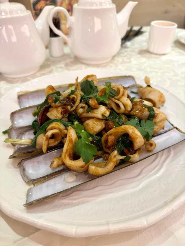 六福菜館位於西貢市場街,是一家連續多年獲得米芝蓮一星的海鮮餐廳,餐館分三層,環境潔淨,燈光柔和。侍應招呼週到,主打新鮮海鮮和粵菜小炒,另外亦可加工外來海鮮。餐牌上有數款全包套餐,亦可散叫。揀咗4人海鮮餐C椒鹽奇脆豆腐(8件):豆腐外皮炸得金黃酥脆,內裏的保持嫩滑軟嫩,味道香辣鹹香,非常惹味!薑蔥炒蟶子皇(4隻):蟶子皇肉質爽口,味道鮮甜,口感豐富,既有海鮮的鮮美,又有薑蔥的溫暖辛香,風味層次分明。椒鹽焗鮑魚(4隻):鮑魚肉質鮮甜又彈牙,鹹中帶有蒜香,加埋椒鹽好惹味!天婦羅桶蠔生菜包(4隻):桶蠔肥美飽滿,蠔肉炸至外層酥脆,裡面保持嫩滑多汁。用生菜包住蠔肉吃,除咗增添清爽的口感,還減輕了炸物的油膩。添加少許沙律醬提升味道,咬下去會感受到鮮蠔非常Juicy且鮮甜爽口。上湯開邊龍蝦伊麵(2隻):龍蝦味道鮮美,肉質爽彈鮮嫩,伊麵口感爽滑,吸收了濃郁的龍蝦上湯精華後更添滋味。鮮菠蘿生炒骨:排骨外層炸至金黃酥脆,內裡肉質嫩滑,配搭菠蘿的果香和清甜。整體呈現出糖醋經典的酸甜鮮美。米湯浸時蔬味道是清爽細膩,蔬菜帶有一種清淡中帶有米飯香氣和微微甜味的自然味道,非常健康。自家製甜品:椰青大菜糕口感清爽、味道香甜,帶有淡淡的椰香。…查看更多