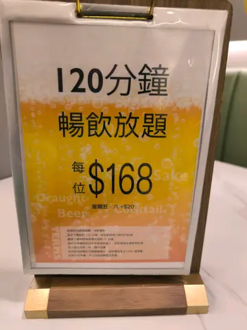 今晚和老友运动完,老友话想来杯啤酒,于是就在附近一间串烧小店,是但求其入,反正都系啤一啤,殊不知依度都几热闹⋯⋯左手边眼见邻座两位食客微微细语饮啤酒⋯⋯总之就不停地喝啤酒⋯⋯而右手边的食客就不停饮Highball ,已经饮到面红耳热,细看Manu 之下,原来$168任饮两个钟,难怪他们饮得面红耳热啦!