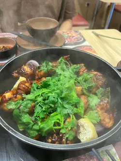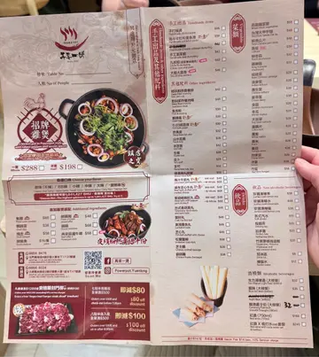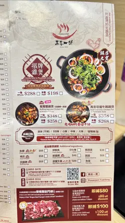 今次我地去左大西北既元朗呢边食一间朋友介绍既鸡煲火锅小店,呢间餐厅虽然个地点唔起眼,但系好多人食,唔book位基本上好难等位,因为佢地本身唔算多位,所以我地都有book定先去食😌招牌魔鬼鸡煲(半只)($198)佢地既鸡煲系以印度魔鬼椒去整,最劲既变态辣要睇免责声明先好试,而佢地既辣度比一般既鸡煲店辣,平时食开中辣就建议小辣都够,我地就叫左bb辣,唔算好劲,上鸡煲时佢个辣椒味真系好香,有小小攻鼻,但食落冇相像中咁辣,可能因为有个心理准备,同埋鸡煲汁带有少少甜,中和番个辣度,鸡件好入味,食完可以加汤打边炉🐥🌶️椒盐粟米($58)我地叫左个小食椒盐粟米,佢个蒜好香,又够咸,跟住条粟米本身又超甜,好好食🌽本地手切牛(例牌)($ 198)佢手切牛既纹理几靓,个口感唔错,唔会太肥,牛味相对都重🐮爆汁牛筋丸(一份)($68)个牛丸真系爆晒汁系入面有少少肥膏咁,半份$48得4粒,一份抵食好多,同埋都真系好食,好彩叫左一份😋手工韮菜饺($42)手工饺食得出系自己包既,个皮偏簿,个馅既肉鲜味多汁🥟珍宝冻柠茶($38)呢度既柠檬茶超大杯,够2个人饮🍹呢间小店都真系几好食,佢个辣系过瘾得黎又特别,火锅配料质素都好好,同埋个椒盐粟米都好食,黎到唔止打边炉,熟食都值得叫,特登过黎食都冇令我地失望🥰…查看更多