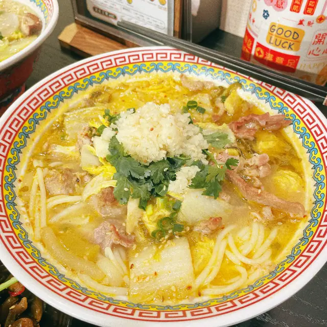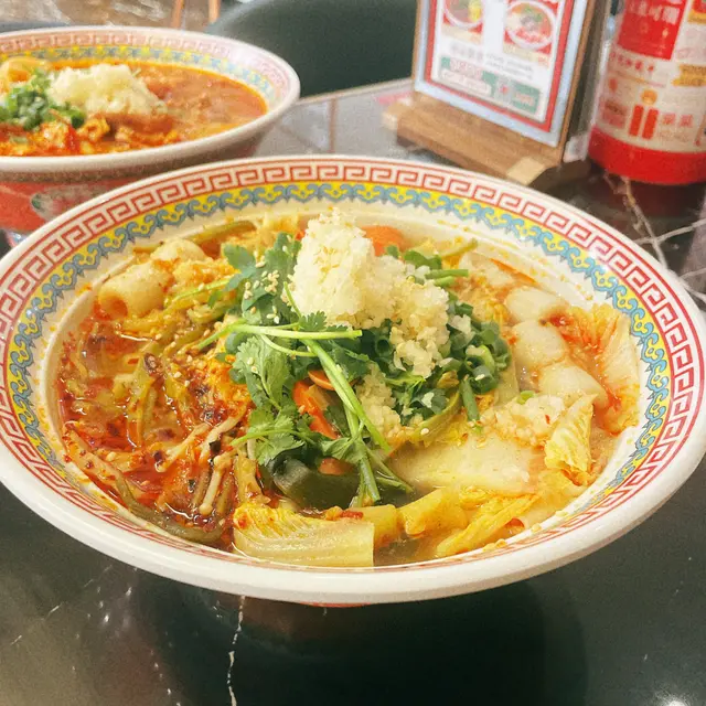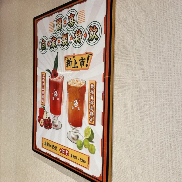 上環嘅冒喜整體感覺真係幾特別!今次叫咗佢哋嘅人氣套餐同幾款加餸,價錢合理,食物選擇多樣。朋友揀咗唔想揀菜就選咗牛魔王套餐有美國肥牛、滑牛肉、毛肚、潮汕手抽牛肉丸同牛黃喉,肉質新鮮,肥牛切片油花分布均勻,涮一涮即熟,好滋味值得推介系生椰香茄湯以為系椰菜點知系椰子湯底,帶椰香,甜味配辣味湯底好調和,第一次食呢一種蕃茄配椰子口味嘅湯底,超驚喜,覺得一定要試,最尾系完全一的冇淨飲曬湯底牛丸比想象中彈牙,有很重的牛肉味薯粉好掛湯我就想試多幾款唔同嘅嘢,就揀八寶套餐,可以任選8款菜式包括了魚腐、潮州蒜香墨魚丸、鵪鶉蛋、滑牛肉、豬大腸、 脆哨、牛黃喉同白蘿蔔片。各款配料都幾有特色潮州蒜香墨魚丸,蒜香濃郁,咬落彈牙,非常有嚼勁另外又叫咗魚腐,魚腐軟軟滑滑,完全吸曬湯汁的味道滑牛肉嫩滑,入味得宜,豬大腸同牛黃喉處理得乾淨冇腥味,口感彈牙。牛黃喉感覺有一啲似魷魚,爽口彈牙,覺得好好食另外發現咗一個好特別嘅配料初頭以為呢個係花生原來就係貴州丁家脆哨乜嘢系脆哨?原來就好似豬炸豬油渣咁樣,食落好香好脆,仲可以一樽樽咁樣賣就都幾方便湯底選擇帶微微辣味嘅養生白胡椒湯,真係重胡椒味,越食個人越嚟越熱,超暖胃飲品叫咗自家製洛神花山楂蘋果,帶點酸甜,清爽解膩,夏秋轉季飲正好,飲品樽裝好可愛餐廳全日免加一,都幾抵食👍…查看更多