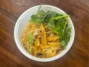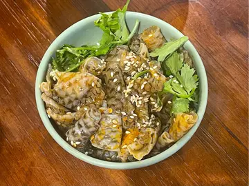 喺北角和富美食广场入面,隐藏住呢间主打冒菜嘅小店,食材选择多,汤底够惹味,仲可以自由配搭,无论钟意辣定唔辣,都一定有啱嘅选择!八宝套餐 (鱼腐、潮汕手搥牛肉丸、蟹籽蟹粉丸、王中王火腿肠、鹌鹑蛋、滑牛肉、炸支竹、贡菜)汤底选择咗生椰蕃茄汤,清甜中带酸,椰香味好自然,饮落好舒服。配料方面,鱼腐吸晒汤汁,入口鲜甜;潮汕手搥牛肉丸咬落去弹牙有肉汁,牛味浓郁,超正!蟹籽蟹粉丸鲜味十足,仲有蟹籽嘅脆卜卜口感;炸过嘅支竹口感丰富得嚟又浓味;土豆粉烟烟韧韧,吸晒汤汁后更加惹味。吉祥套餐 (墨鱼丸、午餐肉、莴笋、鹌鹑蛋、士豆片、秘制香辣汤(小辣)、蕃薯粉)汤底辣味够香但唔会太刺激,啱啱好。配料方面,墨鱼丸爽弹,鲜味浓郁;午餐肉吸晒辣味,咸香十足;莴笋清新爽脆,带少少天然甜味,中和咗辣汤嘅浓烈口感。蕃薯粉同土豆粉唔同,更加滑溜,吸晒汤汁后食落去特别过瘾。秘制藤椒鱼皮麻辣控必试之选!鱼皮外层挂住浓浓嘅藤椒酱,入口先系香辣,后劲仲带少少麻味,成个口腔都充满香气。凉拌酸辣土豆丝土豆丝切得非常幼细,口感爽脆,配埋酸辣汁,味道好开胃。…查看更多