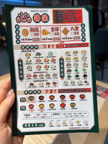虽然小编唔系好食得辣🌶️,但系宜家冒菜好流行,亦有唔同类型既汤底🥣可以拣就钟意左食🤩 其实等于系一人火锅🍲,只系有人帮你逐碗煮好~ 全部都惹味香口,又有好多配料可以拣,价钱唔贵~(5 😍 系满分,🤩系半分)八宝套餐 (8款食材) - $72 (好味指数:😍😍😍😍🤩)生椰番茄汤 🥥🍅🥣 - +$5一向都钟意食番茄汤底 🍅🥣 今次试下新既生椰番茄汤 🥥🍅🥣 系用左生椰子肉🥥同埋酸甜可口既蕃茄🍅,以香气四溢、浓郁既鸡高汤汤胆🐥🥣做底,味道清新香甜,开胃啲又有营养~特浓清鸡汤 🐥🥣呢个就系汤胆,系以猪骨🍖、鲜鸡🐥、赤肉、白胡椒⚪️等香料熬6个钟而成,清澈唔油腻,味道清甜又可以提鲜,可以感受到食材既原味道~潮汕手搥牛肉丸 🐮🟤 所谓既手搥就系用铁棍敲打牛肉🐮,分解纤维,因为过程无机械摩擦同无产生热力,所以保留到风味🤩 所以食落弹牙爆汁,牛味香浓,真系几唔错~贵州丁家脆哨 🔥🐷用左肥肉比较多既猪肉🐷,跟住切成肉丁,再放入去猪油🐷炸🔥,同时加酱油提香同埋甜酒酿上色,炸到啡色就搞掂~ 因为炸既时候去紧啲油,肉又吸收左油香,所以味道丰腴又酥脆,令整体香口啲~蟹籽蟹粉丸 🟠🦀蟹粉丸🟠系由墨鱼同鱿鱼肉🦑制成既,里面再包左鲜黄色既蟹籽🟡,入口味道鲜味香甜,蟹籽🟡脆卜卜,鲜味浓郁又juicy,几好食😋美国肥牛 🇺🇸🐮 - +$3唔会好似坊间𠮶啲咁肥,肥瘦适中,口感柔嫩软滑,有几肥美既油香,牛味🐮几香浓,同时索埋汤底🥣既精华就更加香口同好食😋五花腩片 🐷 - +$3油花丰富,肉味浓郁,口感软嫩juicy又有咬口,同时索埋汤底🥣既精华就更加香口同好食😋滑鸡片 🐥几厚身,口感嫩滑亦带有少少肥,鸡味🐥几浓郁,唔会有雪味❄️猪大肠 🐷 - +$3唔会有腥臭味,洗得几干净~ 煮完几有咬口但唔会韧,亦有丰腴既油香都唔错~鱼腐 🐟🟨先将鱼肉🐟打到起胶,捞埋生粉同水💧搅匀,跟住再炸到金黄色,口感软滑甘甜,味道几鲜味,有清香既鱼味🐟冰豆腐 🧊⬜️冰豆腐🧊即系蜂巢豆腐🐝⬜️,将啲豆腐⬜️雪到变冰🧊,跟住再解冻,豆腐⬜️就会有唔同大细既气孔,豆味🟡香浓啲之余,亦可以索多好多汤汁同精华几正🤤娃娃菜 🥬几新鲜,煮完味道清甜,软腍多汁白萝卜片⚪️🥕白萝卜片⚪️🥕切既大细啱啱好,质感爽口,味道清甜多汁,亦都几索味~豆卜 🟨 颜色金黄,胀卜卜咁系四方球形既,里面好似海绵🧽咁,吸晒汤底🥣既精华,味道清香有咬口都几好鲜冬菇 🍄🟫口感软腍juicy,有芳香馥郁既香味都几好食😋芋丝质感爽口,而且一样索晒汤底🥣既味道几正火锅面 🍜 - +$5火锅面 🍜真系吸汤🥣神器,索晒汤底🥣既精华,入味香口,质感Q弹,有淡淡既面粉香🤩凉拌酸辣土豆丝 🌶️🥔 - $28 (好味指数:😍😍😍😍🤩)宜家天气越黎越热🥵 食翻个凉拌菜就几舒服😌 个土豆丝🥔唔会切得好幼,口感软糯绵密,酸酸辣辣🌶️,清爽开胃🤤凉拌酸麻辣莲藕片 🌶️ - $28 (好味指数:😍😍😍😍)另一个凉拌小食就要左莲藕片,味道清新,口感爽脆,麻既味道停留喺嘴入面,辣🌶️得黎几惹味~桂花蜜乌梅冰粉 🌼🍯🧊🟫 - $18 (好味指数:😍😍😍😍)食完咁多辣野🌶️都想食啲冻冰冰既野解辣🌶️,呢个冰粉🧊🟫就啱啱好👍🏻 里面有爽弹微酸既山楂QQ果冻 🔴🍮、香甜滋润既桂花蜜糖水 🌼🍯同埋酸酸地爽滑既乌梅冰粉,清凉解渴又可以解辣🌶️,有芬芳既乌梅香味,感觉几爽😌洛神花山楂苹果 🌺🔴🍎 - $9 (好味指数:😍😍😍😍)洛神花🌺可以抗氧化同帮助消化,而山楂有丰富既维他命C,又可以降血脂,加上两样料都酸酸甜甜咁,连埋芳香既苹果🍎,就更加清新又可以解油腻,加上食完辣野🌶️之后配杯冻冰冰🧊既野饮真系正~酸梅青柠乌龙茶 🍋🟩☕️ - $9 (好味指数:😍😍😍😍)酸梅同青柠🍋🟩呢个配搭几特别,酸梅味道混合左甜酸咸,配埋清新既青柠🍋🟩同甘香既乌龙茶☕️,感觉酸爽,加上冻冰冰🧊咁就更加消暑解渴,又可以清热解毒😜好味指数:😍😍😍😍🤩推介指数:😍😍😍😍🤩…Read More