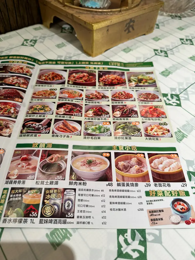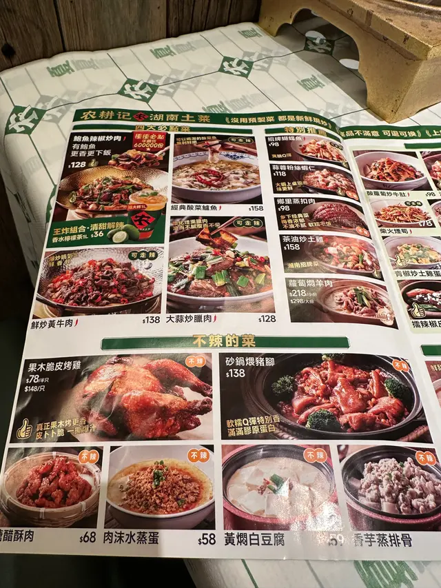 鮮炒黃牛肉(可減辣):新鮮黃牛肉用芹菜、蒜頭等一起炒,新鮮熱辣上桌。粉絲蒜蓉蝦(可減辣):店員即場在客人的餐桌上即時把蝦蒸熟。拌菜有粉絲、洋蔥、韭菜等,蝦肉新鮮彈牙,粉絲洋蔥等入味又美味。茶油炒土雞(可減辣):雞肉拌上木耳、沙葛和辣椒,加上茶油炒熟,聞到濃濃的茶油香味,入口感覺雞肉鮮嫩可口。鮑魚辣椒炒肉:白木耳、鮑魚仔和豬肉拌著青辣椒炒,主角是青辣椒,不能吃辣的我們也能吃,真的不太辣。高壓鍋紅薯飯:二人就給了一鍋飯上桌,內有紅棗和番薯,米飯香軟可口好吃。香水檸檬茶:很大的一杯,採用了中國香水檸檬酸,入口酸甜開胃、清油膩👍整體而言,這家餐廳的菜餚都做得正宗、有特色,味道很不錯,想要品嘗湘菜口味的,可以去農耕記試試。不能吃辣的,可以和店員溝通,有些菜餚是可以免辣或減辣的…查看更多