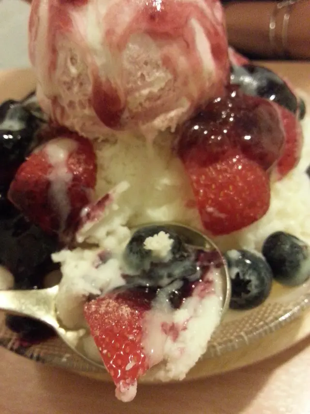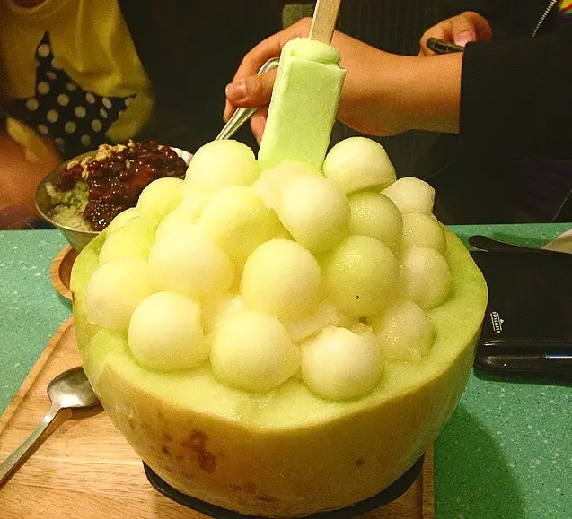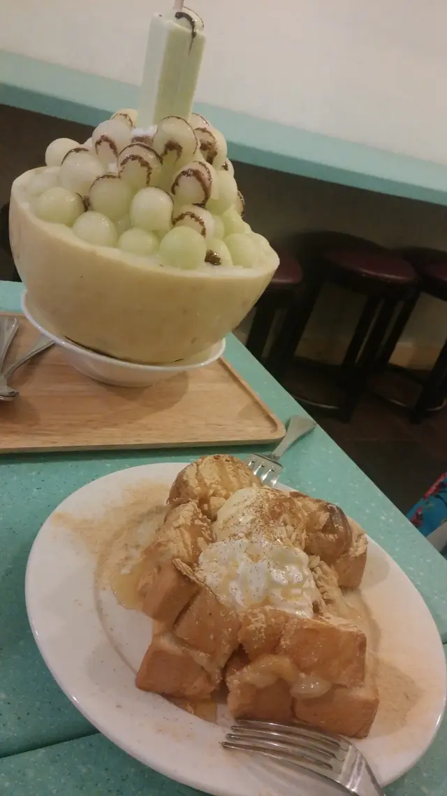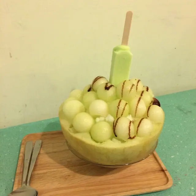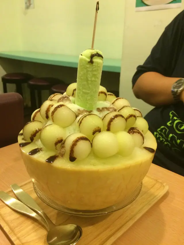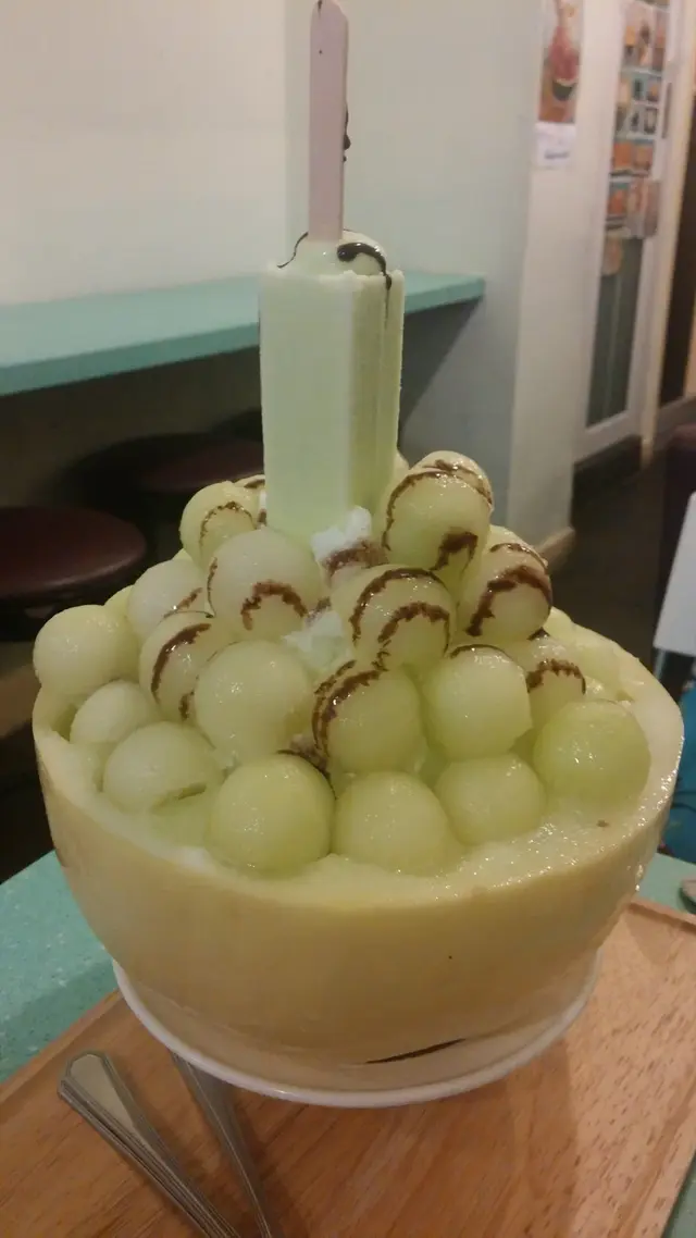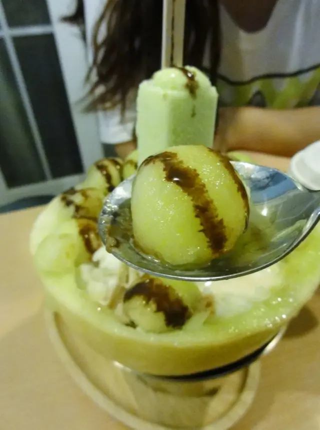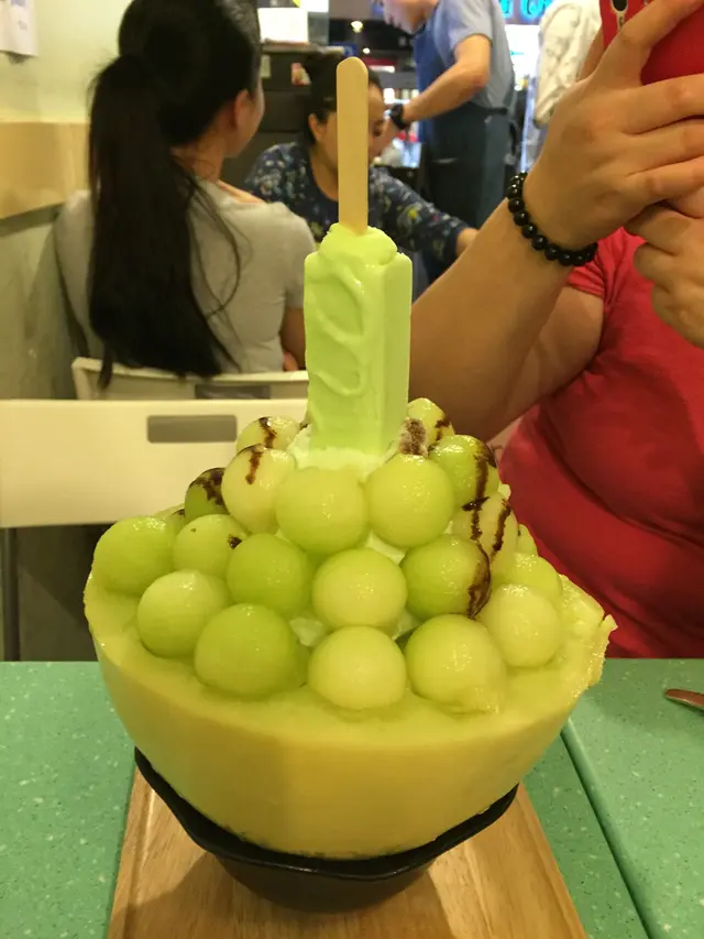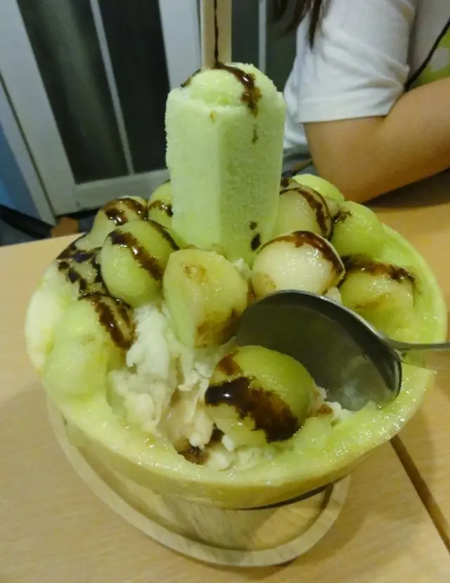 TGI Friday~下班後與舊相好聚舊,再直落糖水甜品一環,沿金巴利道一帶行,隨意地走進某間甜品店。冰庫主打一系列韓式刨冰,西瓜冰、蜜瓜冰、紅豆蓉冰等,最後點選了蜜瓜刨冰Melon Bingo。起初想點一人一份,原來一份已經是超多,3人也幾乎吃剩。蜜瓜刨冰Melon Bingo/$108,全份也是採用蜜瓜製成,半個蜜瓜內有一個個蜜瓜球以及冰涼的片片狀刨冰,正中央插著蜜瓜雪條。整個蜜瓜尚算鮮甜,蜜瓜球配合少量朱古力醬,不過片片雲呢拿味的刨冰就有點兒過甜,加上雪味比較重,入口急凍,而比較欣賞的是正中央的蜜瓜雪條。而溫度亦維持得很好,不會太過易溶,由於加進少量奶,食落甜而滑。吃完有股冰涼暢快的感覺,悶熱的天氣下,品嚐刨冰亦算不過不失。…查看更多