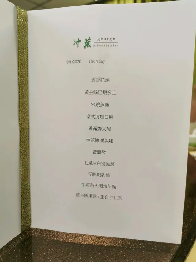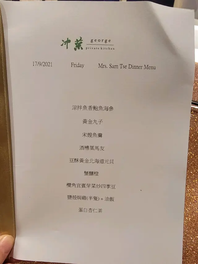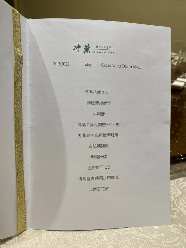私房菜予人感覺菜式精緻,因此有不少樓上飯店亦稱自己為私房菜,其實都是公開飯店有餐牌點菜的;這晚到的「冲菜」,久違了真正的私房菜,隱藏在一條寧靜街道的商廈內,沒有堂皇的門面及店名招牌,單位內裝修簡單,就只有兩三張枱,我們預訂了最具私隱的房間。平均每位幾百蚊,與老闆兼大廚 George 商議便可。涼拌魚香鮑魚海參川式頭盤,鮑魚後加放在海參上,食之前才攪勻,因此輕輕的麻辣,主要從海參上透出,我覺得味道唔錯。青芥末涼拌手撕雞沙律底層是青芥末西芹及青瓜,手撕雞鋪面,同樣食之前才攪勻,爽口清新,青芥末黏稠味溫和,成功打開味蕾。薏米陳腎冬瓜檸檬鴨湯非常醇厚味清,感覺很下火,湯渣的鴨依然好吃。香麻海鹽蒸東星斑賣相吸引,紅紅綠綠的青紅椒並不太辣,提升香味,不過本身成班應該是養的,口感厚實,有點嚡及不入味。鹽焗本灣奄仔蟹已經到了時令的尾段,蟹膏不算多。酒香炙骨頭我很喜歡這些帶少甜味的黑醋骨,味道豐富,肉質結實,鬆軟入味。金銀蛋上湯浸莧菜最後那一下健康的素菜。滑蛋鳳尾蝦煎米粉滑蛋名副其實幼滑,鳳尾蝦新鮮肉彈,不過米粉過硬非脆。紅豆涼粉雪糕一次過滿足三個願望,這個組合真有意思,吃得滿足。…查看更多