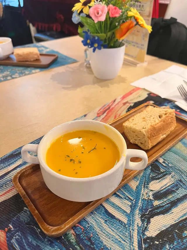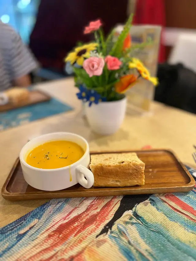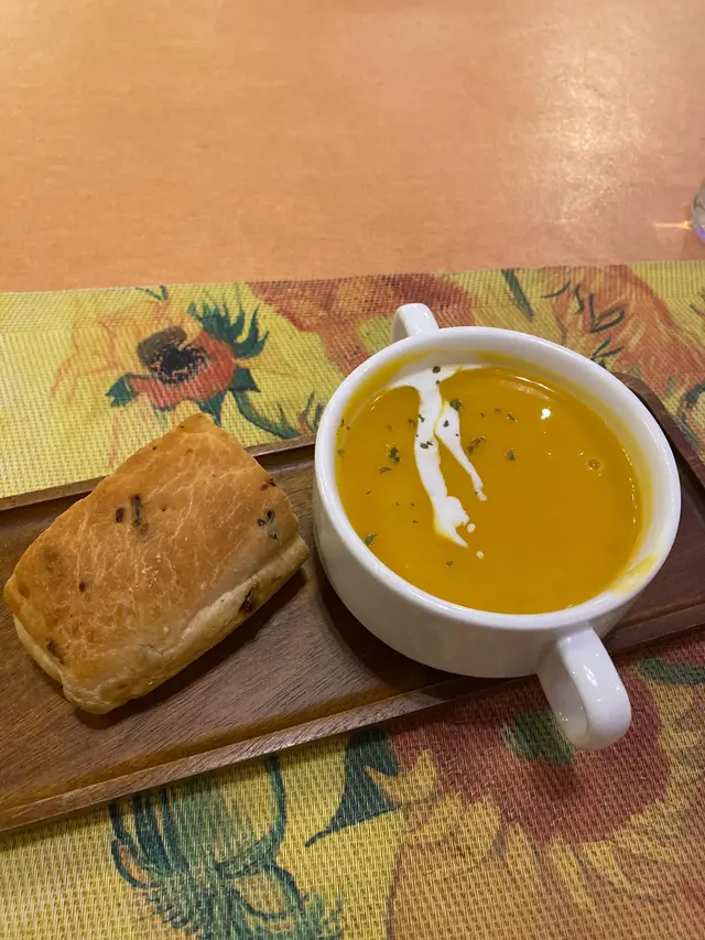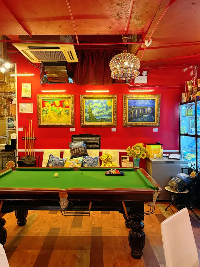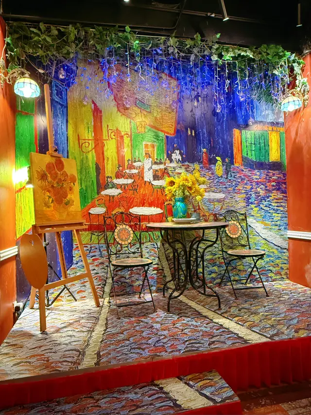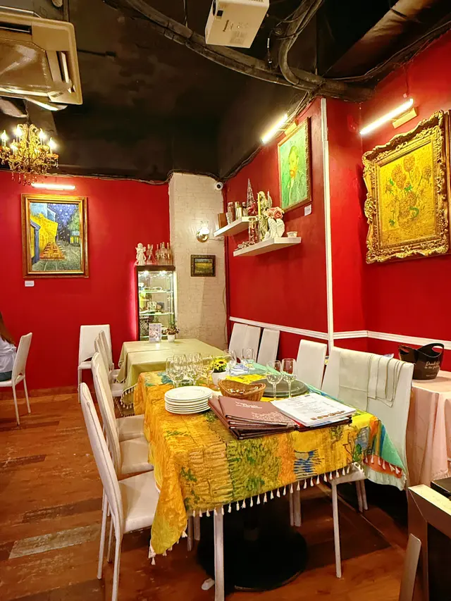 走入凡高廚房,第一眼就會覺得自己行咗入一間小巧的畫廊😍 四周牆身都滲滿梵高嘅色彩元素——星空的筆觸、向日葵的暖黃——連磚瓦都似乎擁有自己嘅故事❤️ 餐廳內仲有個超大嘅「打卡位」,好似原寸放大嘅畫布咁,影相一流,保證可以洗爆社交平台🤭 角落仲擺咗張桌球枱,食完飯仲可以輕鬆玩一局,就好似嚟咗朋友屋企咁自在😚 餐牌方面,最值得一提嘅,係佢哋嘅「梵高畫布蛋糕餐」✅ 上檯嘅係一件雪白似畫布嘅蛋糕,旁邊配埋幾款食用顏料,同畫筆一樣嘅小工具🌟 食客可以親手揮灑即興靈感,畫一朵向日葵,或者簡單幾筆星空,分分鐘畫功唔重要,重點係享受過程😆 ——呢個環節真係勁有趣,食之前已經多咗一份藝術參與感😘 至於主菜推薦,海鮮燴飯飯粒吸滿海鮮精華,口感綿滑得嚟又唔會太「淋」,每一啖都有蝦同青口嘅鮮甜味👍 墨汁海鮮意粉都唔錯🥰 黑漆漆嘅意粉一咬落去居然好清爽,大蝦、帶子相當搶鏡,係一個帶少少神秘氣息嘅菜式☺️ 有興趣可以叫返件朱古力心太軟😘 唔使多介紹,一切開就有香噴噴嘅朱古力味四溢,配埋雪糕食,完美收尾🤤 飲品方面,點名要試雞尾酒❣️ The Starry Night🥳 用藍橙酒打底,撞上檸檬嘅清新,再加梳打水嘅氣泡感,入口微甜清爽,顏色迷人,望住杯入面嘅湛藍,就好似將夜空握喺手中😎 …查看更多