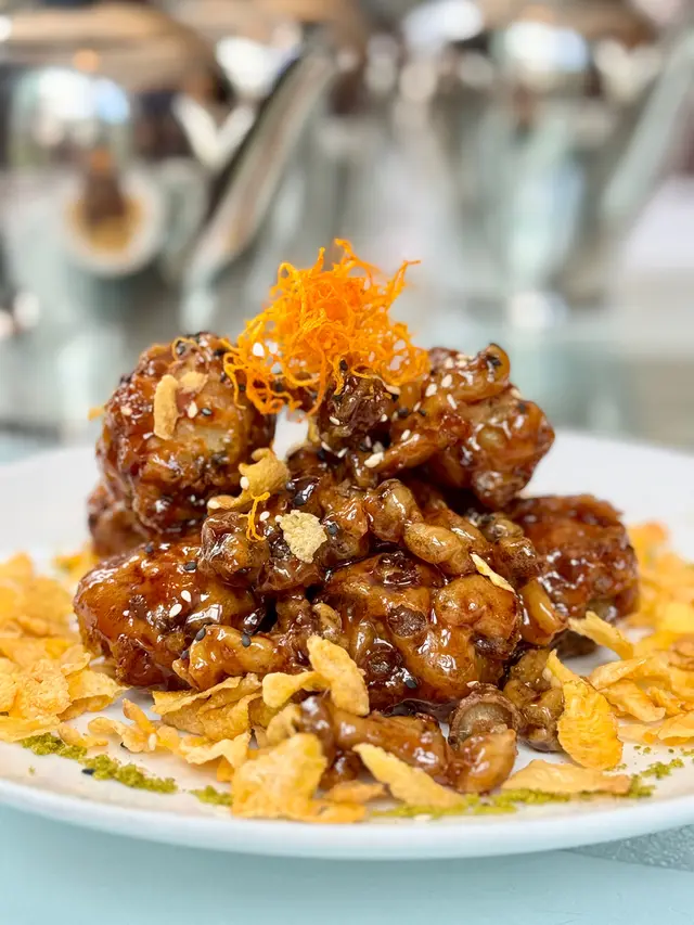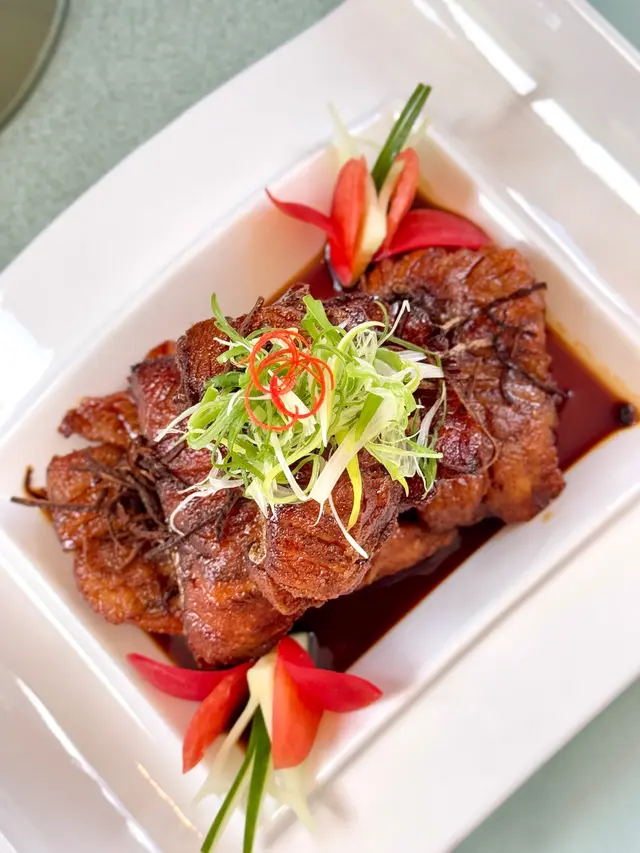 陳皮,在中醫藥上具有多種功效,既能幫助消化、改善消化不良、緩解胃脹氣、增加食慾、還有止嘔等作用;作為食療入菜,也可用來去腥解膩、增加風味,在粵菜中更是經常會使用到。天氣悶熱,今個盛夏尖沙咀凱悅軒主廚(黃皓勤),以開胃及增加食慾的「陳皮」為靈感,打造出六道特色美食;採用逾十年的優質陳皮入饌,充份發揮其特色及食療功效,供應期由2025年8月1日至10月31日止。「遠年陳皮特色菜」中有多款菜式選擇,可按自己需求而選取。首先上場的「古法陳皮燻魚」,選用肉質細膩嫩滑,柔軟且厚身的百花鱸魚,魚肉去骨起肉後以陳皮汁醃製,之後再炸至金黃酥脆;陳皮的甘香完全滲透入魚肉之中,配以青瓜薄片及自家製陳皮醬汁,味道香濃且滋味。口感醇厚綿滑的「十二年陳皮花膠燕窩羹」接著上場,羹湯融合了高湯的濃郁,帶有陳皮的溫潤香氣與花膠的膠質口感,搭上細膩雞蓉和燕窩,整體味道和諧又好味。師傅採用肉質肥美軟滑、肉汁豐厚的龍崗雞來製作這味「脆皮茶香雞」,師傅先將雞隻以慢火炸至表皮金黃酥脆,再以香片及普洱混入白飯煙燻製作,打開蓋掩一刻,香氣四溢令人胃口大開;雞肉在吸盡茶香味後,變得更加香濃惹味,咬落皮脆肉嫩又多汁,令人吃後回味無窮。山椒汁野菌炒牛助骨肉~據朋友說牛肋肉鬆化又入味,而旁邊鮮爽翠綠的蜜糖豆及香口的野茵,也提升了這味菜的滋味。甜梅菜肉鬆蒸豆腐~豆腐香甜滑溜,更帶有陣陣豆香,非常好吃;而惹味醒胃的甜梅菜與肉鬆,也令這道菜更加好吃,是一道簡單又美味的菜式,更是最佳下飯能手。炒得乾身又有鑊氣的「砂窩陳皮黃魚蝦乾炒飯」,飯中加入香脆的黃魚粒、鹹鮮的蝦乾粒及甘香的陳皮粒;在猛火快炒下,米飯乾身及粒粒分明,在砂窩悶焗下,也令飯粒變成金黃香脆的飯焦,配上陳皮的香氣,非常惹味又好食。師傅以陳皮為主,製作出這味「十年陳皮雞頭米冰花燉津梨」甜品,採用清甜多汁的鴨咀梨,配上軟糯雞頭米,十年陳皮及冰糖,以文火慢蒸燉;梨肉變得軟腍又入味,更帶有陣陣陳皮香,食落甜而不膩,生津潤喉。這裏的招牌甜品「脆皮流沙盞」,層次豐富,包含酥脆、煙韌和香濃於一身;上層是酥脆的菠蘿皮,底下是曲奇蛋撻底,中間係煙韌的流心奶皇炸湯丸,是一味多重口感又完美結合的甜品。非常高質又美味的一餐,雖然有少少貴,但間唔中食一餐慰勞吓自己,也是應該的!#凱悅軒 (尖沙咀)地址: 香港尖沙咀河內道18號香港尖沙咀凱悅酒店3樓電話: +852 37217788…查看更多