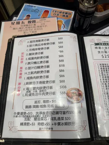 上餐速度,接近一个钟(眼见好多人都催单)食物质素:只食左腊味煲仔饭,唔太评到分,普通野,将啲食物放哂落个煲到,完!室内有啲大油烟味叫左2个煲仔饭,先个讲例汤,见到人哋都有,就问下个阿姐有例汤未(因为我一早见到有2碗系个水吧无人理),同佢讲完,佢行过去水吧又来来回回唔知做咩,最后都要搞成3-4分钟先拎到碗汤比我,第一个煲大概15分钟左右上,等等等,食食食,我个饭都食完好耐。我都知人多,客多,等左30分钟,问一下另外个煲仔饭咩情况,回覆:差唔多,就得,再等多十分钟,再问下搞成点,(眼见系我食紧煲饭既时候入黎既人都已经有得食) , 佢再覆我,黎紧架啦,就出黎! 大佬,你漏单讲声,白白浪费左我成粒钟等你个饭,未整就未整 ,乜野就得,出紧黎!最后决定唔食,埋单走人,起身既时候,个啊姐话,黎啦黎啦,我行左埋单,同收银讲,收银都可以比我净系比食左个一个饭钱(但睇先出唔系太乐意)。重点系我起身去埋单既时候,个煲仔饭系重煮紧….…查看更多
