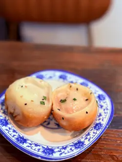 。鲜虾浓汤生煎包,呢款鲜虾浓汤生煎包,真系皮薄馅多,一咬落去,外皮煎得金黄香脆,入面嘅鲜虾馅料新鲜鲜甜,仲有浓郁嘅虾汤涌出嚟,好味