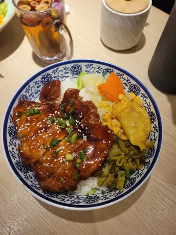 好烟靭好味,啲鸡就同我𠮶个花雕鸡锅嘅鸡质素差唔多唔差,亦都唔系特别好,份量都几多,不过就几多系肥膏皮 间中都有几件鸡胸位,我自己就唔记得睇火 搞到好韧花雕鸡锅几好味有酒香,仲有好多红枣同埋杞子 底下,有啲娃娃菜 男朋友𠮶个就有娃娃菜,又有金菇又有萝卜抵食啲,仲系套餐