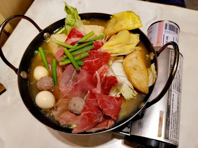 沙茶牛肉鍋呢個真係要2個人食!佢好足料,呢個set真係岩岩好,唔會食唔晒,又唔會唔夠飽。佢有鵪鶉蛋、牛肉、肉丸、菜、金菇….