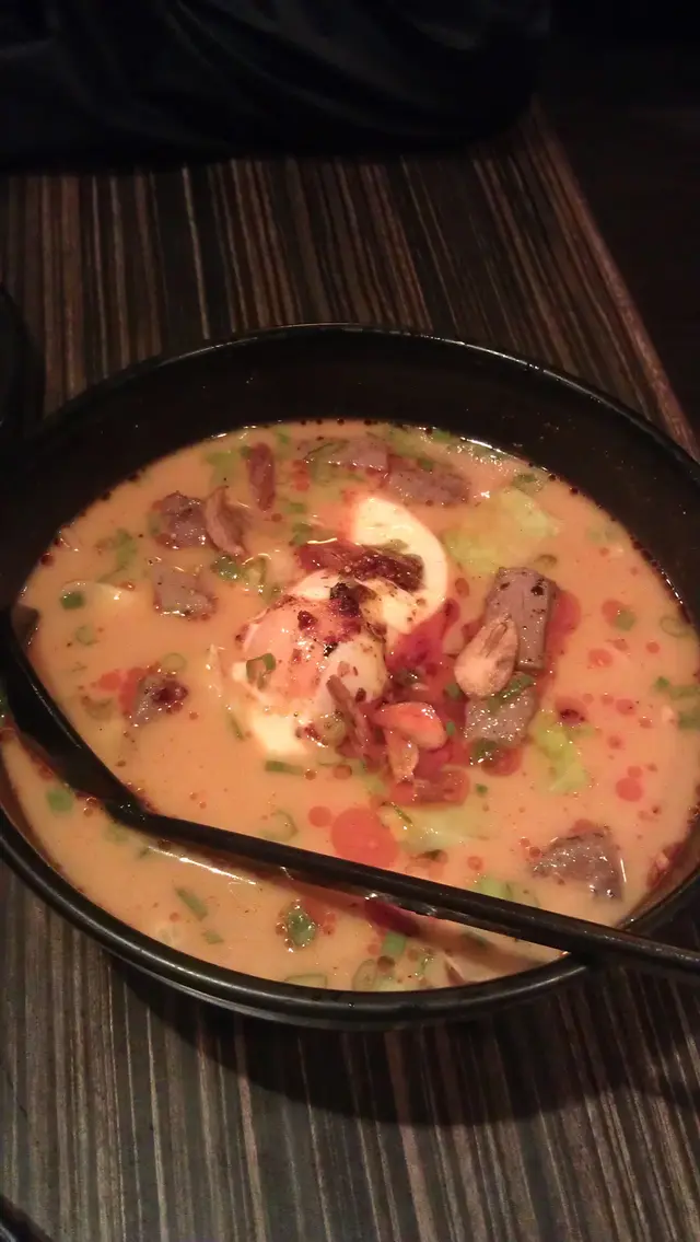 晚上到到都多人 難得見到一間唔駛等位既就入去食啦 鬼石坊主地獄湯拉麵 裡面有牛柳粒同蛋湯夠香夠辣,不過麵就小左啲.牛柳粒好食 唔太淋又唔會過熟蒜片茶漬三文魚石頭鍋飯呢個老婆叫既... 佢唔食得辣嘛..聞到都香噴噴 鍋係熱的 整到啲飯有啲飯焦.. 正查看更多