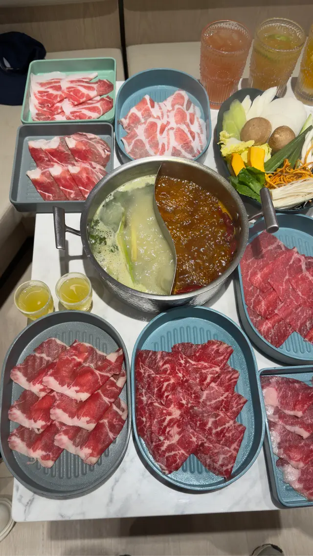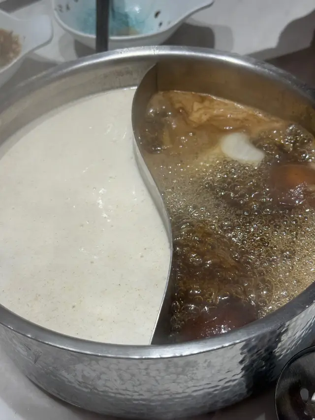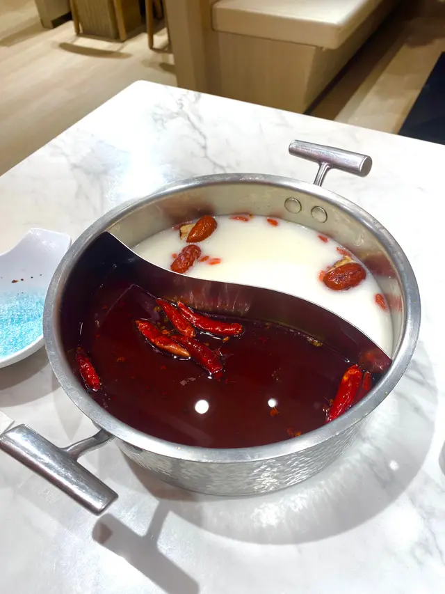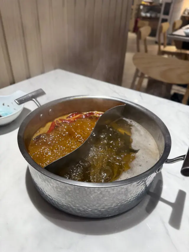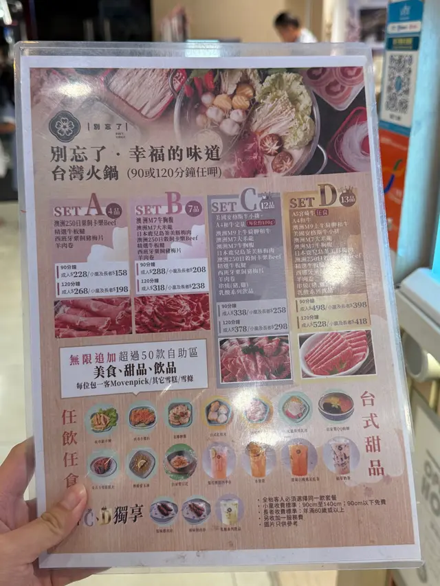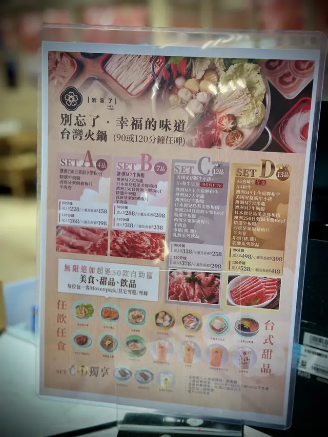 今天吃的是位於太和廣場「別忘了」,入門兩棵櫻花許願樹將你引入,淺木色裝修配粉嫩櫻花點綴,環境溫馨又帶啲少女心,好适合情侶約會同姊妹聚會,服務都够耐心周到。 汤底选择:芫荽皮蛋+麻辣 第一次尝试芫荽皮蛋湯底,原本以為會几古怪,带住好奇品出意外惊喜!湯底奶白,芫荽香味同皮蛋醇厚係意外地夾,飲落清潤回甘,皮蛋煮到半融嘅狀態开始濃郁甘香,完全冇違和感,襯海鮮同豚肉特別鮮甜。另一邊麻香汤底夠勁唔死辣,越煮越香辣,涮肉必备唔多講啦SET.B套餐 澳洲M7牛胸腹(店家熱推):全場最靚品質!大理石紋油花,輕輕一淥 10 秒就捲起,入口即化似牛油,脂香爆炸又唔膩,配麻辣湯更突出濃郁肉味。 澳洲M7大米龍:肉質結實有嚼頭,牛味比胸腹會更突出,淥耐少少都唔韌,鍾意原汁原味必點。 日本鹿兒島茶美豚梅肉:豚肉薄切勻稱,脂肪比例靚,口感滑溜帶少少微甜,冇咩豬羶味,點芫荽皮蛋湯鮮味會好出。 澳洲250日穀飼卡Beef:肉色深紅,这款原牛味最浓,口感紮實唔柴,點少許醬油已經好正。 精選牛板腱:中間筋絡分明,咬落彈牙有勁,筋肉交織口感過癮,記得唔好淥太耐。 西班牙粟飼豬梅片:瘦肉為主但軟腍唔乾,豬肉味清新,怕肥膩可選呢款。 飲品: -芒橙賓治:芒果同橙肉打成果汁,甜中帶微酸,果肉纖維豐富,解辣一流。 -紅西柚乳酸:係我最爱!西柚酸甜撞乳酸菌清爽,開胃又消滯 人均$200左右,SET.B套餐性價比抵到饱,M7牛胸腹同大米龍的質素對得住價錢,湯底有心思尤其芫荽皮蛋驚喜滿分!環境浪漫得嚟唔侷促,適合三五知己慢慢涮談。值得翻兜~ …查看更多