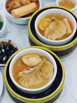 屯门友召集!👋 最近见到利荣轩推出左个「无限时任食点心片皮鸭放题」,身为屯门友紧系要黎朝圣啦😍!只要入座每人都会送一盅原只鲍鱼灌汤饺,仲有成25款以上既即叫即蒸手工点心、8款即炒粉面任叫。大堂仲有新鲜即切金陵片皮鸭、糖水、鲍汁凤爪、萝卜牛腩、斋菜同即炸点心等等,真系睇见都流口水,一于约埋朋友黎食餐劲既!🤤.坐低无几耐,个原只鲍鱼灌汤饺就上枱啦。真系有一只原只鲍鱼系面,加上蟹柳,灌汤饺面仲有d瑶柱粒同蟹柳粒,个汤底饮落好鲜甜,一啖饮落去暖笠笠,感觉好滋补,正呀🍲!.讲到回本位,一定系大堂个自助吧!焦点所在既即切金陵片皮鸭🦆,师傅系面前即切,真系热辣辣上枱🔥。最赞系refill得劲快,完全吾使同人抢,真系无限任食,我地都食左五六次,皮脆肉嫩!另外仲有多款精美小食,好似炸牛奶🥛、炸饺子、春卷、炸油条、咸水角、港式炒饭等等。特别推介个避风塘虾🦐,劲入味又惹味,我地encore左几次。仲有萝卜牛腩、鲍汁凤爪同姜汁紫薯糖水,食到停吾到口。.点心方面当然要叫水晶鲜虾饺🥟,个皮晶莹剔透,吾会太厚,入面只虾爽口弹牙,咬落去有汁,绝对系水准之作。.蟹籽烧卖皇肉质结实,上面d蟹籽卜卜脆;潮州蒸粉果个皮好烟韧,馅料丰富,咬落去口感好丰富;鲜虾菜苗饺就够清新,菜苗好嫩滑,食完d肉食返呢个无咁腻🥬。.陈皮牛肉球🐂有好香既陈皮味,牛肉球打得几弹牙,吾会粉,加埋喼汁食一流;瑶柱珍珠鸡荷叶味好香,糯米软硬适中,入面d料都好足,食完一只都几饱肚。.甜品控必叫芝麻流沙包🖤,一搣开真系流沙架!芝麻味超浓郁,热辣辣食真系好幸福,小心烫口呀!.鲜虾腐皮卷炸得好金黄酥脆,腐皮薄脆,一咬落去咔嚓一声,入面既虾胶好鲜味,点少少喼汁食就最岩🥢。.煎酿青尖椒🌶️煎得好香口,鱼肉酿得几厚身,煎到金黄色,青椒带少少微辣,好开胃。.蜜汁叉烧肠粉皮好滑溜,豉油甜甜地,叉烧份量都算多,吾会食黎食去都系粉,加埋d甜豉油真系无得输😋。.最后叫左个星洲炒米粉做结尾🍜。即叫即炒果然吾同,热辣辣上枱,而且大大份!用料真系好足,有洋葱、蛋丝、虾仁、叉烧、韭黄、蛋花等,炒得好干身又有镬气,咖喱味好香,虽然饱到上心口都忍吾住食多碗!…查看更多