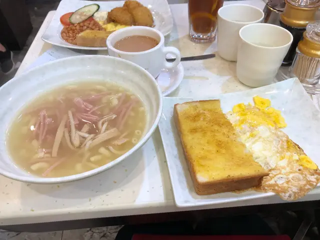 早餐。雞扒 孤獨的美食家等级42019-07-26296 瀏覽 關注 假如在荃灣眾安街一帶早餐,此茶餐廳是常到之一。除了地點方便,用餐氛圍也較好。水吧行明檔,即客人見師傅在工作沖茶,經常聽師傅聽歌吹水。如此有好處,至少輕鬆,吃東西感受不到壓力。伙計一般說不正廣東話,還好禮貌的。一般點沙嗲牛肉麵餐茶走。牛肉說是上乘都是騙人的,不過是巴西牛冧片,處理得尚可,不鞋口,沙嗲汁到位,香濃,點綴不少。湯頭是一般味精雞粉底,麵用大光麵,質感尚可。滑蛋溫柔有蛋汁,多士牛油味香,來貨有點意思。偶爾會點雞扒餐。因為想減少澱粉質的吸收,早上偶然會吃多一點肉。這裡的扒餐也不錯,一般我會走焗豆。腸仔有輕炸過,油是油了一點,至少比水煮有味。蛋同樣是滑的。多士依然。雞扒有誠意,用的雖說不是大碼,但也是全扒,坊間不少店只有其一半,可惜調味失色,舊底我吃到的味道也相對豐富。茶走一般有水準,茶味夠,茶身厚,比不少茶餐廳要好。整體而言,不是十分便宜的早餐,至少不會失望。…查看更多+ 3以上食評乃用戶個人意見 , 並不代表OpenRice之觀點。讚好分享早餐。雞扒 利興餐廳 https://s.openrice.com/QrLT0LJSr00檢舉 張貼 評分4味道4環境4服務3衛生3抵食用餐途徑堂食