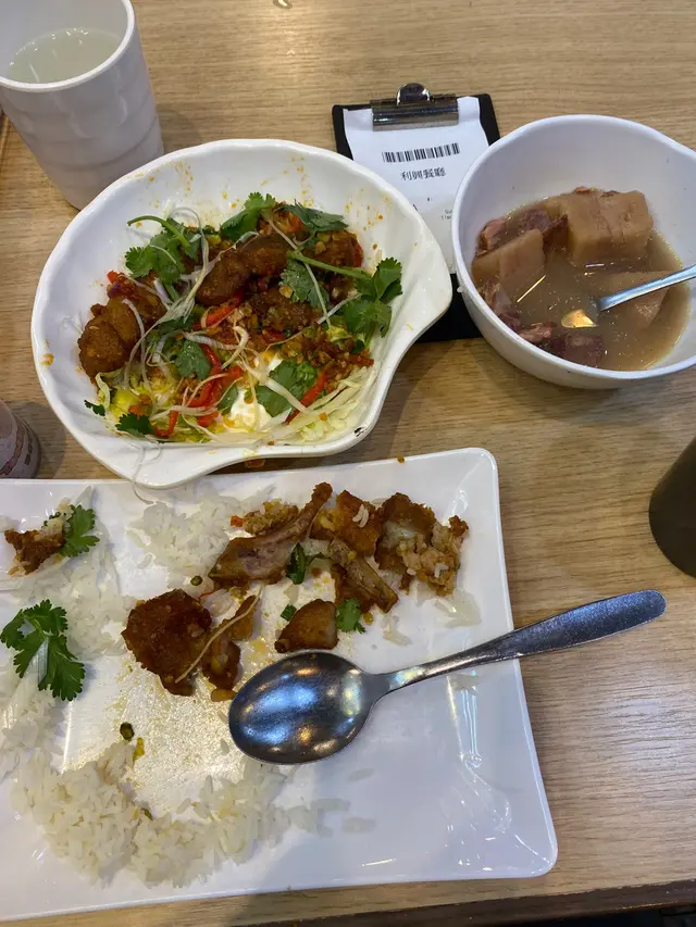 抵食午餐 愛吃的櫻桃等级42020-12-26180 瀏覽 關注 午餐四十多元有湯有熱飲,份量十足,很抵食啊!未叫餐就已放下中湯,滿滿的蘿蔔,唔識有冇味精,只是夠味,不會淡淡。我叫了一份午餐是豬頸肉炒烏冬,上菜快,但應該是即炒的,熱辣辣,香噴噴,色澤吸引。雖是午餐,但快而不失鑊氣,味道剛剛好,不會過鹹,我倆食得津津有味。店員更主動醒目地來烏冬一併給辣椒醬。另外叫了椒鹽雞球飯,這不是特選午餐,五十元,也有湯同熱飲,但品質差得多。或許是午市人多,沒時間好好預備,雞是沒有味的,淡淡,肉沾了粉,但炸/煎不夠,完全不黏。或許下次都是叫午餐,或炒粉炒麵為合。…查看更多以上食評乃用戶個人意見 , 並不代表OpenRice之觀點。讚好分享抵食午餐 利興餐廳 https://s.openrice.com/QrLT0KeGx00檢舉 張貼 評分3味道3環境3服務3衛生3抵食用餐日期2020-12-26用餐途徑堂食人均消費$50 (午餐)