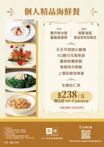 此评论只针对尖沙咀分店,利苑餐厅作为米其林名录上榜的名店,光顾过全港多间分店,一直以来都是高雅环境优质优价的代表。然而此餐厅位于一个冷清的商场地库,落楼的过程我一度以为此处已经结业。点餐之后的经历堪称离谱,八道菜的大闸蟹晚宴用了两个钟时间上了四道菜,而且不是一道道送来而是漫长的等待后突然送上两三道。等到食到最后一道,已经冻噻!管理层应该深刻检讨厨房和露面的工作安排!!!新注册无法upload相片,但系公道自在人心!