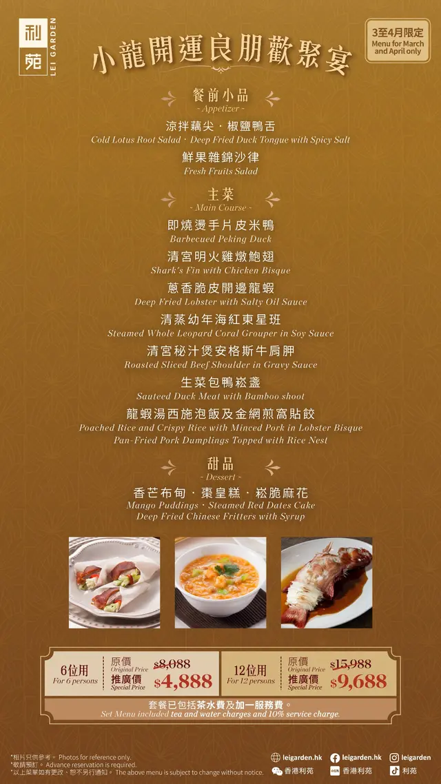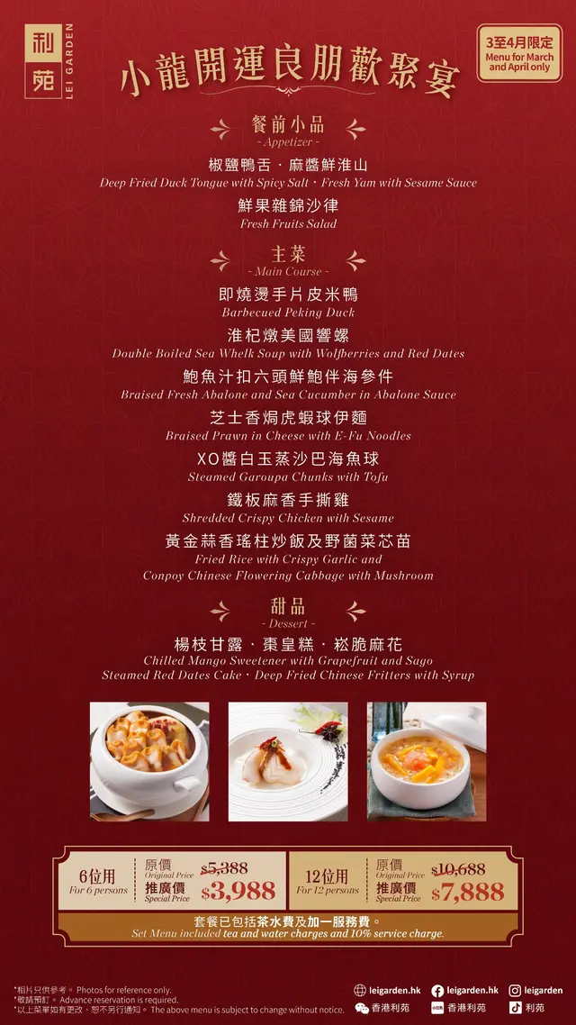 利苑「 小龍開運良朋歡聚宴 」優惠套餐 2025