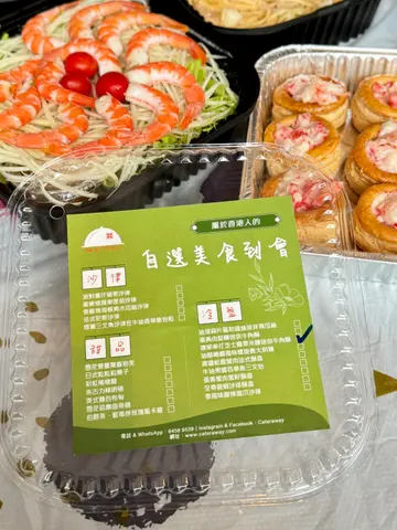 [ 到会。家 Cateraway ]最近朋友生日开party揾咗呢间大型食物到会公司,见佢地有好多知名大客户帮衬,食物款式有中西泰日式、素食等等,迎合到唔同朋友口味👌。✿ 2024皇牌10人套餐 $1488(连10套餐具、2个夹具)呢个套餐所有种类食物都可以自选,有1款沙律、2个冷盘、2个主食、2个小食、1款甜品,同大家分享下今次拣选嘅食物款式:沙律 (5选1)🥗泰酸辣海虾青木瓜丝沙律2磅 冷盘(6选2)🥐浓郁车打芝士酱粟米酿迷你牛角酥6件至尊龙虾沙律酥盒9件主食(7选2)🍝明太子奶油烩珍珠带子意粉2磅芝士焗玛莎文鸡肉饭2磅小食 (3选2)🍖泰风味炭烧猪颈肉伴酱烧鸡扒2磅香蒜蜂蜜BBQ脆炸鸡中翼16件甜品 (3选1)🥧英式面包布甸2磅沙律嘅海虾大只爽弹,泰式酸辣汁好开胃。今次选择咗加钱送货上门,主食温度保持到够热👍,食物味道都好啱朋友们口味。总结🫦 ✿✿✿✿✿✿✿✿✿✿✿✿✿✿✿✿✿✿✿✿✿✿✿✿✿✿到会。家 Cateraway地址:观塘开源道62号骆驼漆大厦第一座12楼D室电话:6458 6539✿✿✿✿✿✿✿✿✿✿✿✿✿✿✿✿✿✿✿✿✿✿✿✿✿✿…查看更多