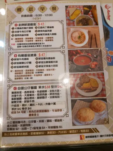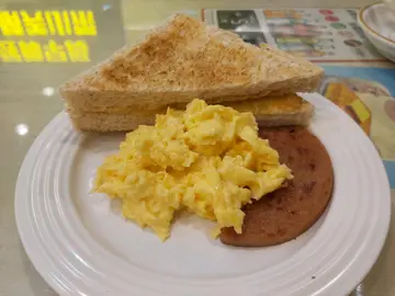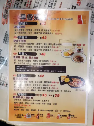 由于呢日起附近做嘢,于是望都唔望个餐牌,走入呢间从未帮衬过嘅屋邨商场茶餐厅帮衬,心谂屋邨商场茶餐厅有几贵呀?入到去坐低,早餐只得一块卡板,前后两边,由于我对猪膶情有独钟,所以拣咗个贵啲嘅餐:鲜茄猪膶,配上茶记少见嘅螺丝粉,面包亦拣咗少见嘅纤麦多士,餐肉及炒蛋,热奶茶。点评如下:奶茶瓦杯上,但凡呢种杯上,品质都唔会差得去边,呢次都唔例外;纤麦多士,即系麦方包,搽上糖浆,味道唔错;半块圆罐正常厚度嘅火腿午餐肉,呢间茶记话系用天龙牌(见餐牌),呢个牌子嘅火腿午餐肉,质素信得过,唔会过咸;炒蛋,碎湿湿,从餐牌另外嘅餐显示系用北海道牛乳去炒,但我食唔到牛乳嘅味道,同大家乐或者一粥面嚟比,完全无得比,两家嘅炒蛋完整一块,不单只滑,而且有牛油嘅香味;猪膶同牛肉一样,切忌过熟,一定要软身先至好食,而呢间嘅猪膶虽然厚度够,但过熟,完全唔好食,加上无姜丝腌过去腥,味道就更差;蕃茄同薯仔一样,可以切细啲,会更易入口;呢个汤唔系纯蕃茄汤,而系蕃茄杂菜汤,里面有其他菜蔬,味道未见突出,但还可以。一个咁嘅早餐要$47,我相信莫讲话同区,即使同一商场内,同一价钱,应该有更好选择。…查看更多