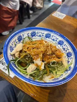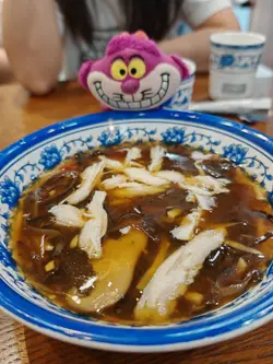 。雞湯小餛飩,湯底用老雞熬制,金黃清澈,飲一啖就知冇加味精,鮮甜到不得了。餛飩皮薄如紙,入面嘅豬肉餡嫩滑入味,每粒都包得均勻,一啖一粒啱啱好