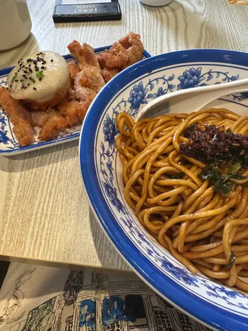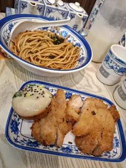 呢间餐厅之前一直都想试,成日经过都见门口排满晒人,今日终于畀我试到喇🥰,佢唔单止价钱亲民,而且豆浆🥛仲系任饮,非常超值❗✨皇牌2号-招牌炸猪扒汤面+生煎包1只炸猪扒🐷都几大块,而且炸得金黄香脆,食落肉质鲜嫩,又唔会太油腻,面质弹牙🍜✨皇牌4号-招牌炸鸡扒拌面+生煎包1只炸鸡扒🐓嘅炸粉唔会好厚,食落卜卜脆,个拌面又唔会太咸,味道唔错💕✨招牌担担面有虾米仔、花生粒同葱花点缀,汤底浓稠惹味带微辣🔥,面质弹牙好食😋✨招牌生煎包果然系招牌菜❗生煎包外皮煎得金黄香脆,咬落去完全系爆汁💕里面劲多汤汁,肉馅鲜嫩,⚠️食嘅时候要小心烫口。另外,舖头亦写明生煎包如果唔爆汁包换🤩,真心赞。