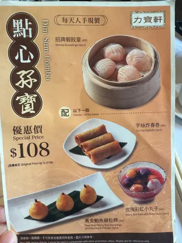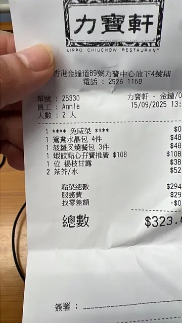 这间位于金钟的知名酒家,午市时段确实非常受欢迎写字楼人士欢迎。今日约咗个客倾吓公事,简简单单叫咗少少食物。潮州炒饭 (经典粤式风味)这并非普通炒饭,而是一道极具特色、在传统基础上追求极致的招牌菜式。秉承粤式炒饭的最高标准,饭粒炒得干身,粒粒分明,色泽均匀,绝不油腻,口感上外微韧内软糯。点心孖宝推广 (精致点心之选)招牌虾饺皇🦐这无疑是粤式点心的「皇者」。力宝轩的虾饺水准极高,通常皮薄如纸且柔韧不易破,透出内里诱人的粉红色虾肉。内馅采用新鲜大虾,饱满弹牙,可能混以少量笋粒增添口感,鲜味十足。黄金鲍鱼鸡粒粿咸鲜味浓,口感极佳的点心。味道奢华而和谐,既有海味的鲜甜,也有肉类的丰腴,还带有南瓜的天然甘香。⭐️性价比高⭐️相比单点两款点心,「孖宝」价格通常更为优惠。⭐️一次尝双经典⭐️非常适合两位用餐的客人,可以一次过品尝到两款镇店点心,无需担心点太多吃不完。⭐️点心品质不变⭐️推广价但绝不降低品质,依旧是手工制作的高水准点心。🌟🌟总结与温馨提示🌟🌟如果您是点心爱好者,想以最佳价格体验力宝轩的点心功力,「虾饺点心孖宝推广」是聪明又实惠的选择。而「潮州炒饭」则适合作为主食管饱,风味独特,适合多人分享。…查看更多