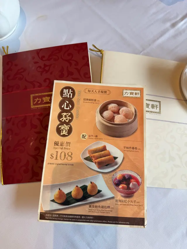 這間位於金鐘的知名酒家,午市時段確實非常受歡迎寫字樓人士歡迎。今日約咗個客傾吓公事,簡簡單單叫咗少少食物。潮州炒飯 (經典粵式風味)這並非普通炒飯,而是一道極具特色、在傳統基礎上追求極致的招牌菜式。秉承粵式炒飯的最高標準,飯粒炒得乾身,粒粒分明,色澤均勻,絕不油膩,口感上外微韌內軟糯。點心孖寶推廣 (精緻點心之選)招牌蝦餃皇🦐這無疑是粵式點心的「皇者」。力寶軒的蝦餃水準極高,通常皮薄如紙且柔韌不易破,透出內裡誘人的粉紅色蝦肉。內餡採用新鮮大蝦,飽滿彈牙,可能混以少量筍粒增添口感,鮮味十足。黃金鮑魚雞粒粿鹹鮮味濃,口感極佳的點心。味道奢華而和諧,既有海味的鮮甜,也有肉類的豐腴,還帶有南瓜的天然甘香。⭐️性價比高⭐️相比單點兩款點心,「孖寶」價格通常更為優惠。⭐️一次嘗雙經典⭐️非常適合兩位用餐的客人,可以一次過品嚐到兩款鎮店點心,無需擔心點太多吃不完。⭐️點心品質不變⭐️推廣價但絕不降低品質,依舊是手工製作的高水準點心。🌟🌟總結與溫馨提示🌟🌟如果您是點心愛好者,想以最佳價格體驗力寶軒的點心功力,「蝦餃點心孖寶推廣」是聰明又實惠的選擇。而「潮州炒飯」則適合作為主食管飽,風味獨特,適合多人分享。…查看更多